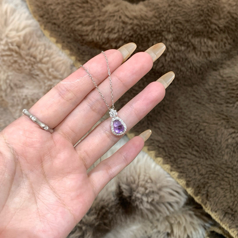 轻奢高级感闪钻紫色小葫芦吊坠项链女精致百搭颈链小众设计锁骨链