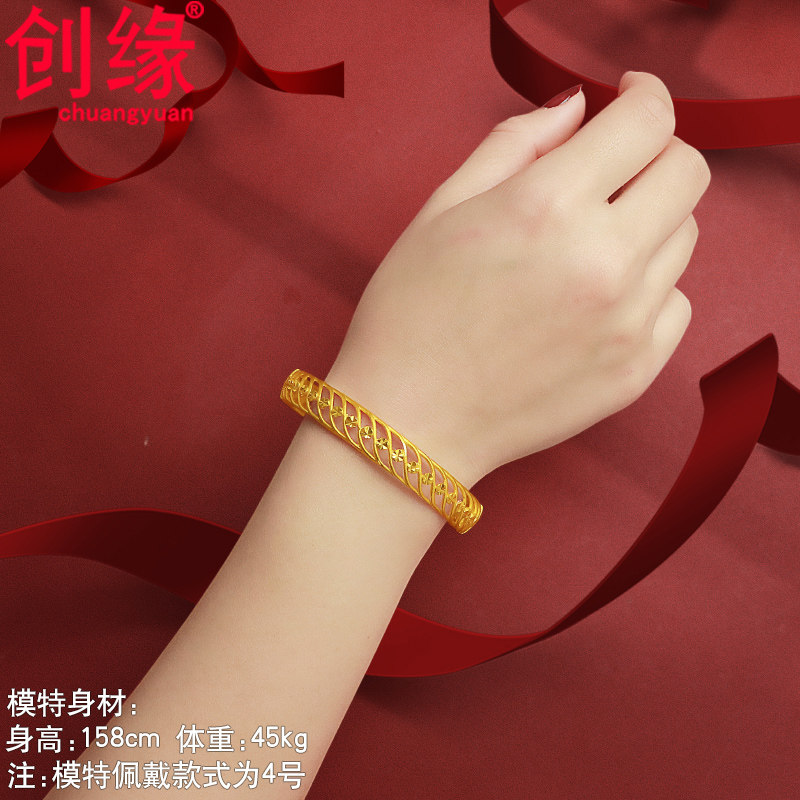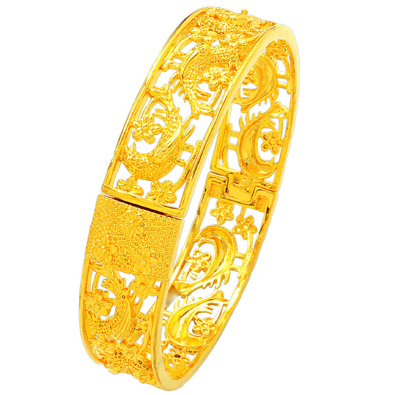 创缘仿黄金手镯结婚新娘镂空镀沙金镯子暗扣镀金龙凤手镯妈妈老人