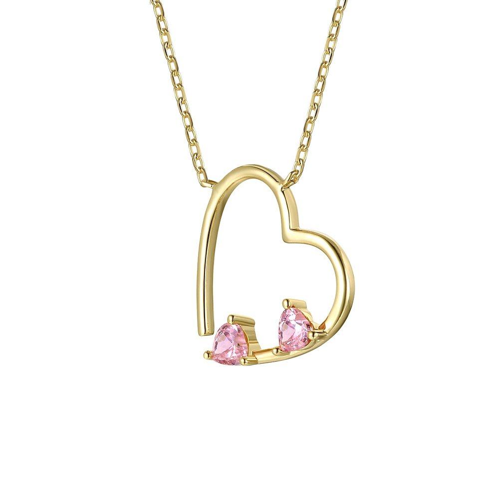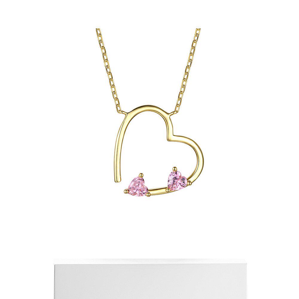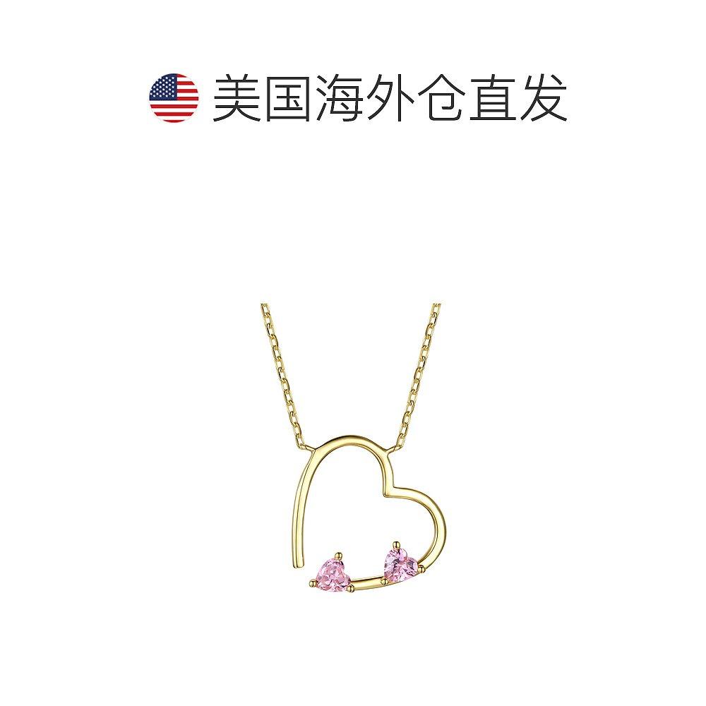 自营 genevive14k 镀金纯银带粉红色钻石方晶锆石开口心形分层项