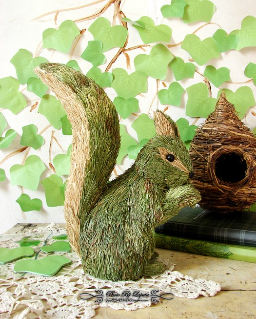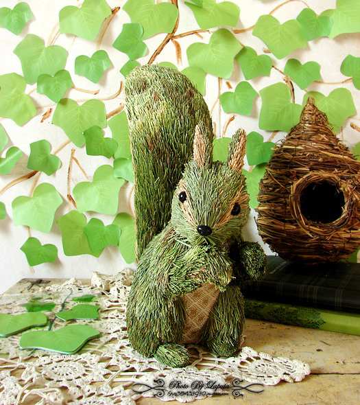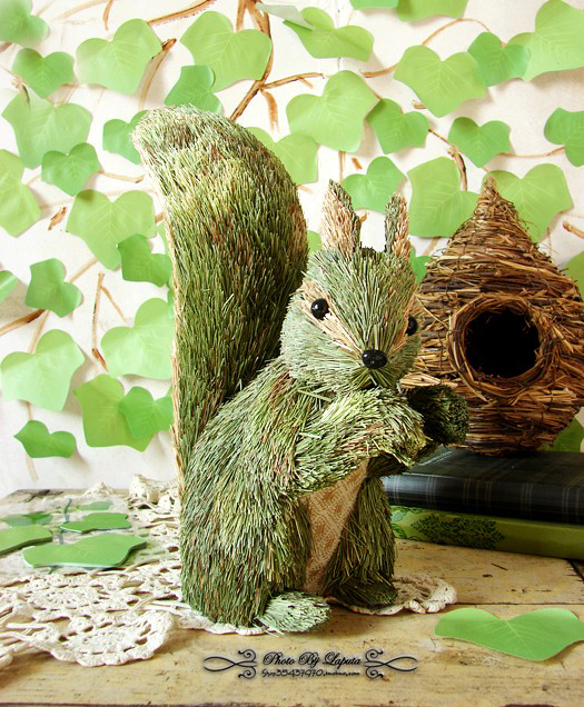 松鼠。外单外贸田园乡村草编居家工艺摆件结婚礼物森林系婚礼布置
