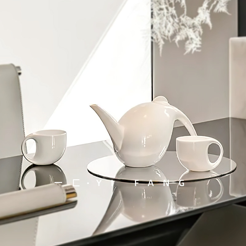 一匚现代极简样板间创意白色陶瓷茶具茶杯售楼处酒店会所茶几饰品