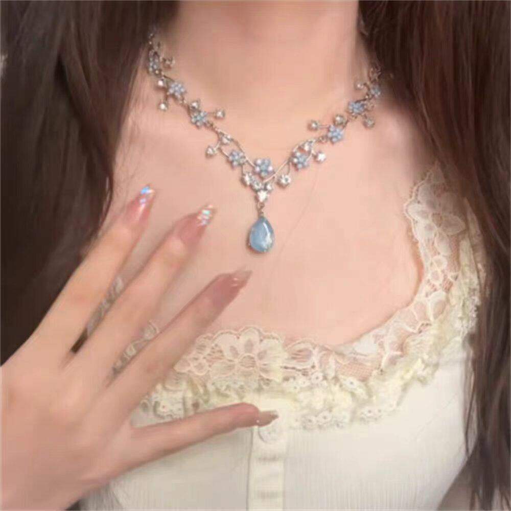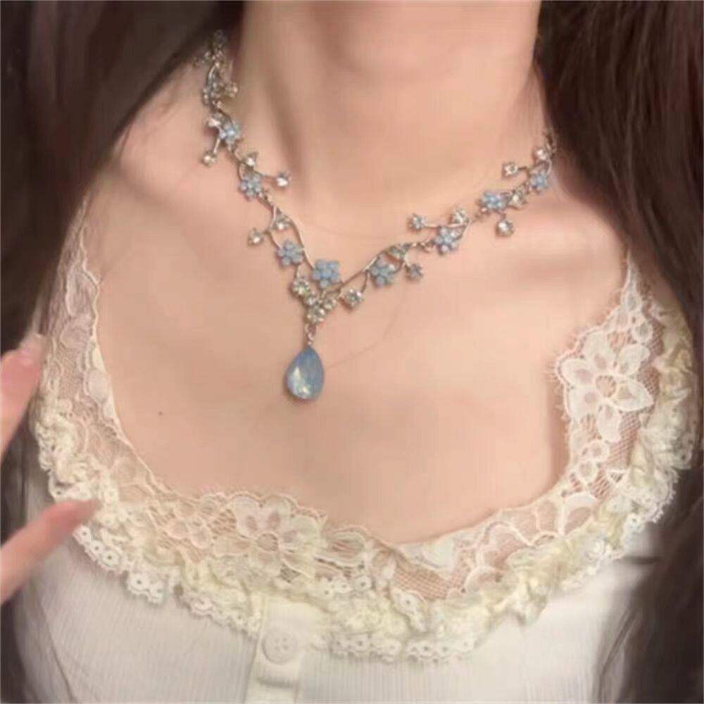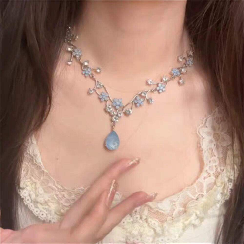 夏季清冷感蓝色花朵项链女款轻奢高级感漫天星甜美礼服锁骨链配饰