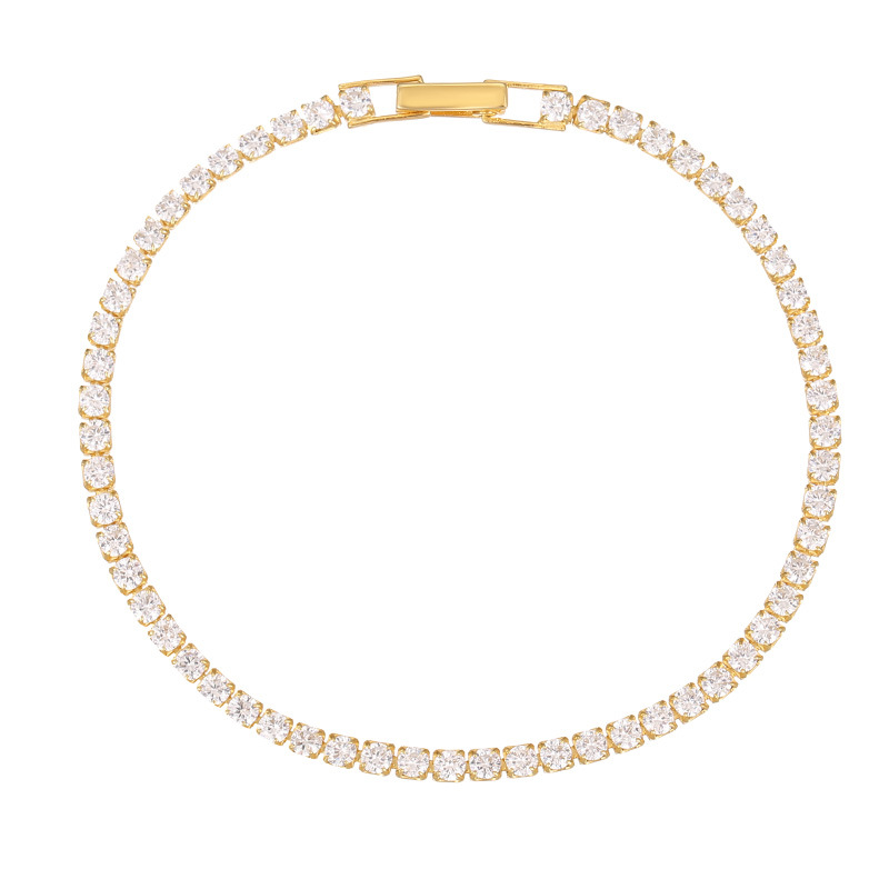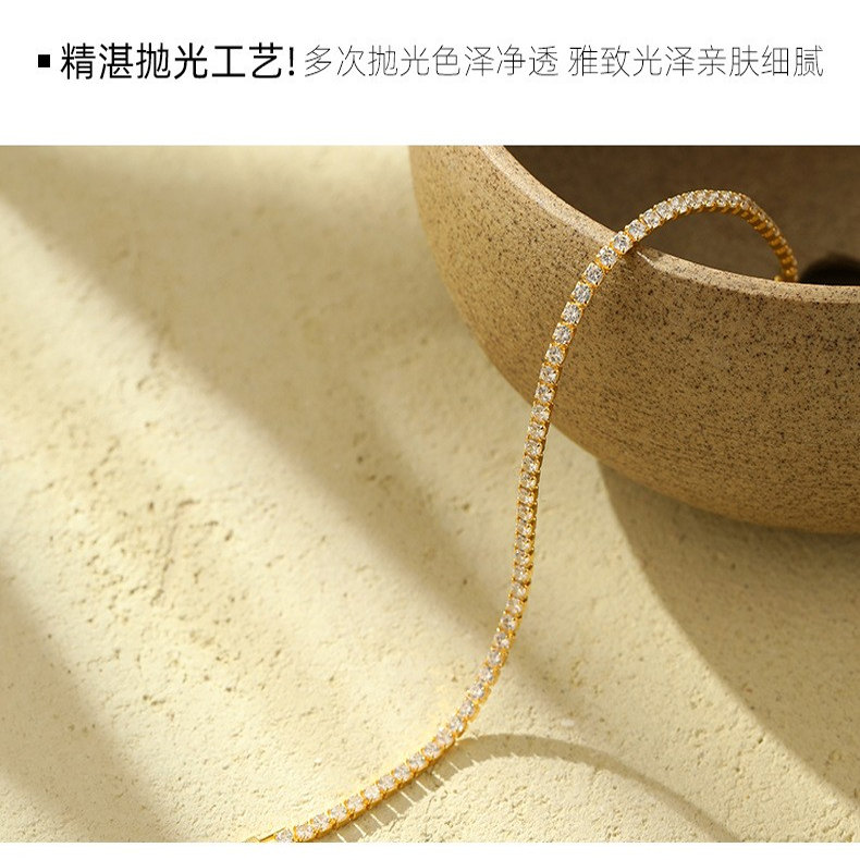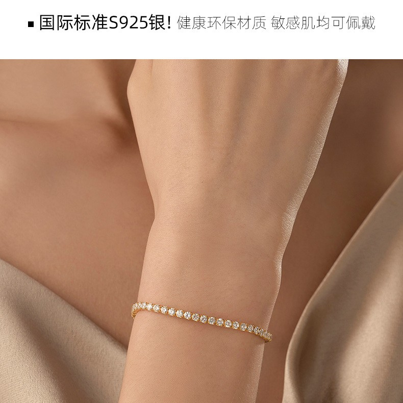 网球手链女生彩色 锆石手链爆闪纯银欧美风网球钻石手链满钻手链