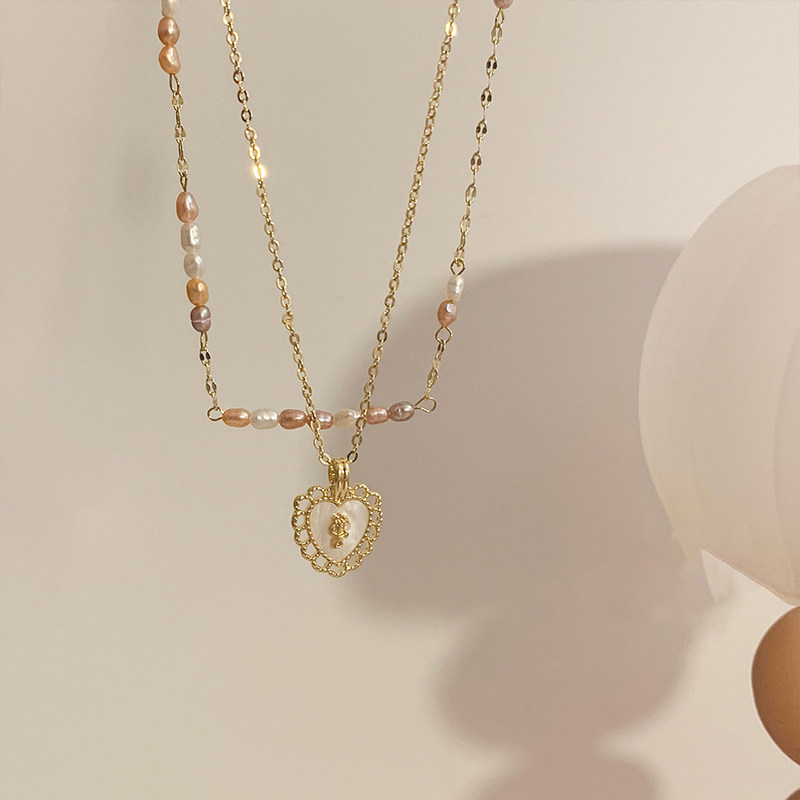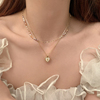 双层叠戴珍珠项链2025新款潮爱心吊坠颈链小众设计感高级感锁骨链