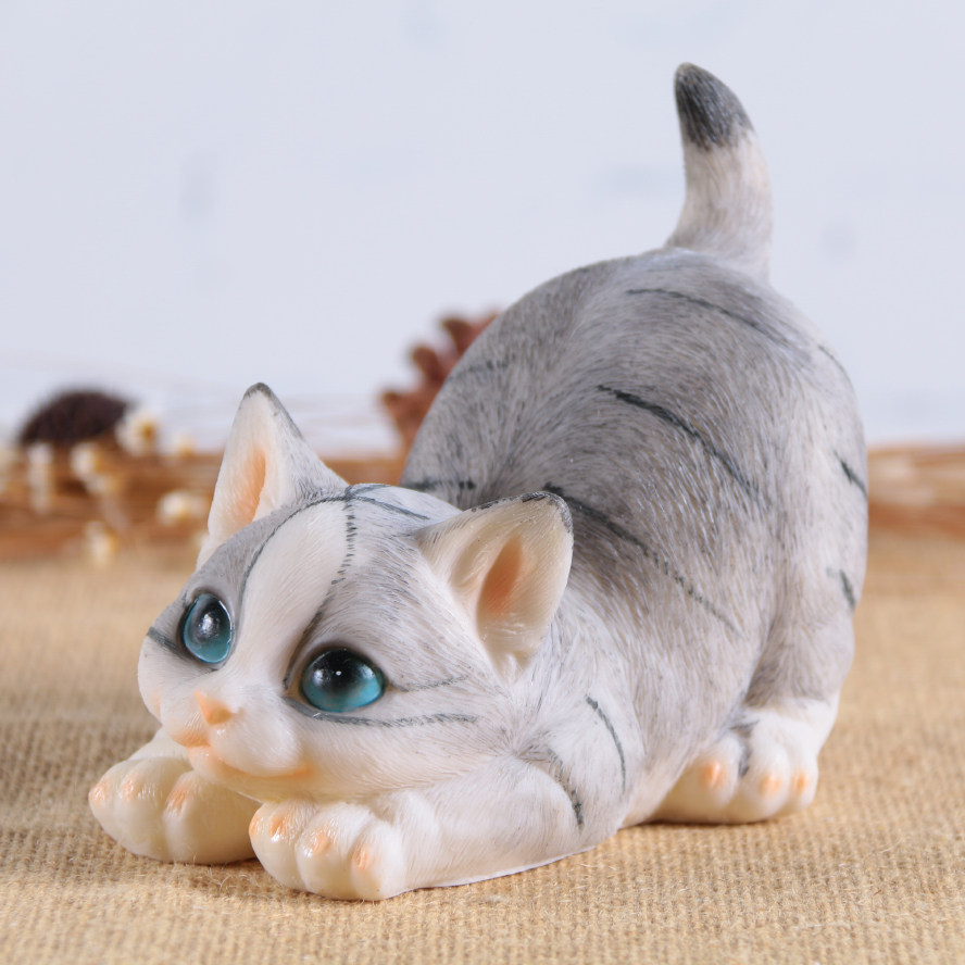 可爱树脂猫小摆件动物家居饰品工艺品创意生日礼物客厅电视装饰