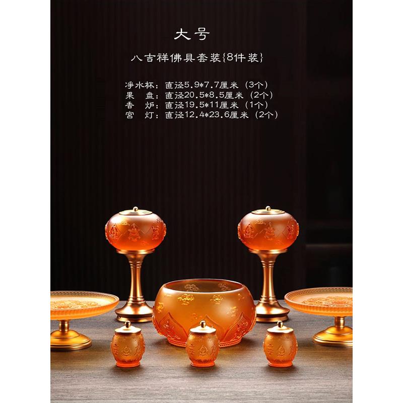 琉璃八吉祥佛具用品大全香炉果盘宫灯净水杯家用佛堂寺庙供奉套装