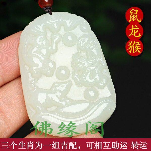 和田玉吊坠十二生肖三合贵人鼠龙猴牛蛇鸡虎马狗兔羊猪男女款挂件