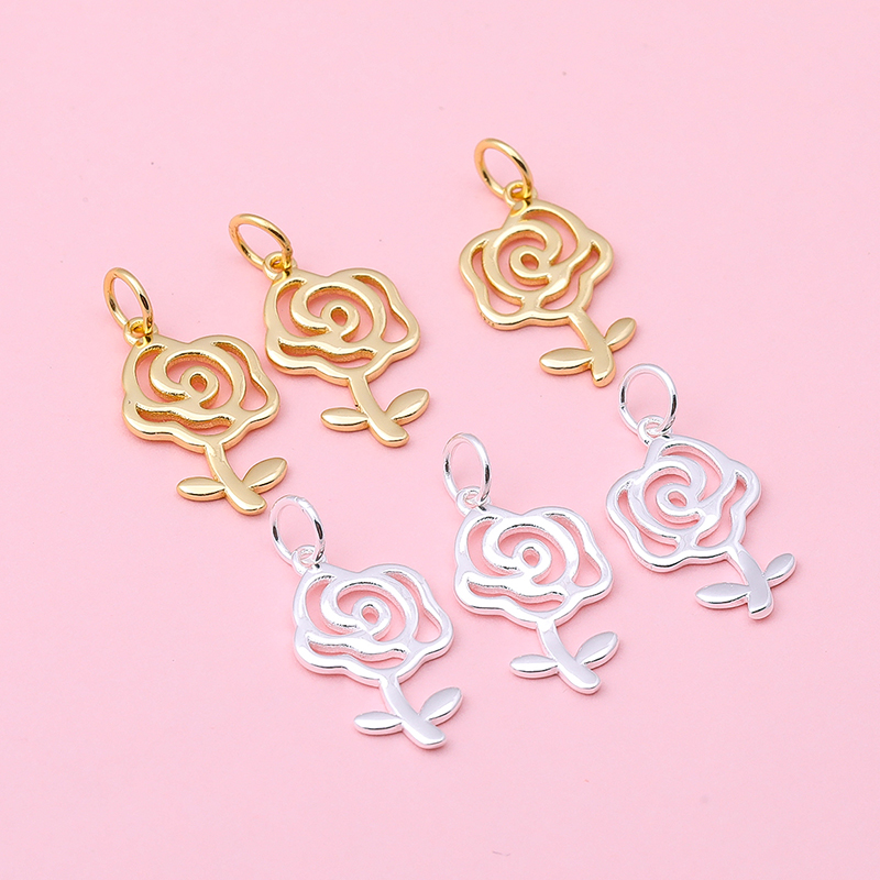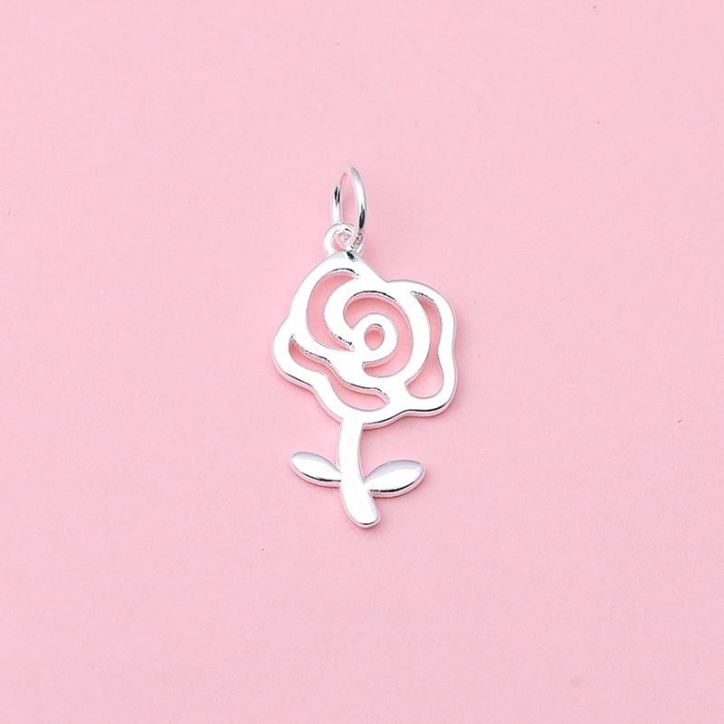 手链项链挂件坠子 925纯银镂空玫瑰花吊坠 手工diy串珠材料配件