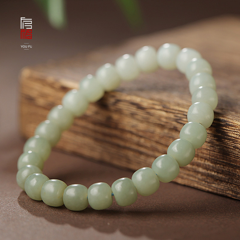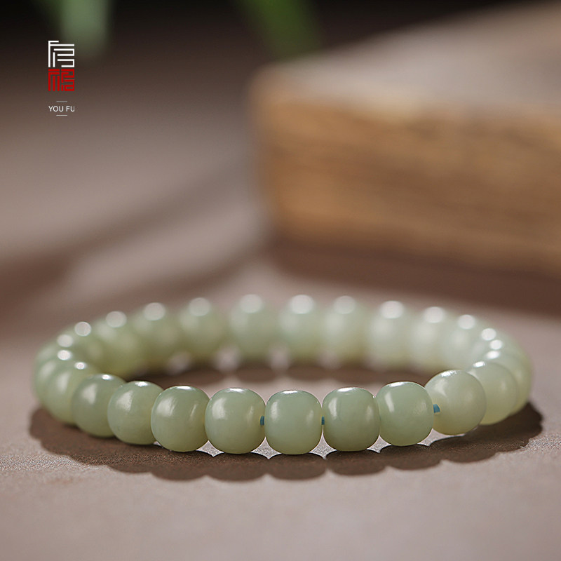 稚念文创新疆天然和田玉青海白玉女手串桶珠手链老型珠玉珠串包邮