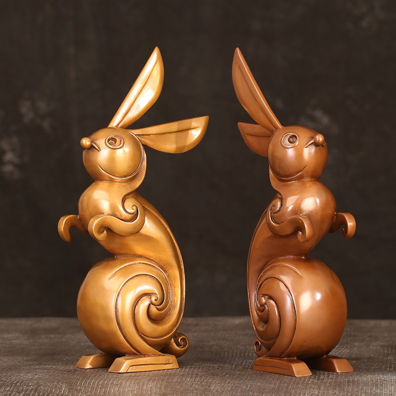徽匠铜韵 纯铜生肖卡通兔v工艺品摆件生日礼品玉兔开运家居摆设