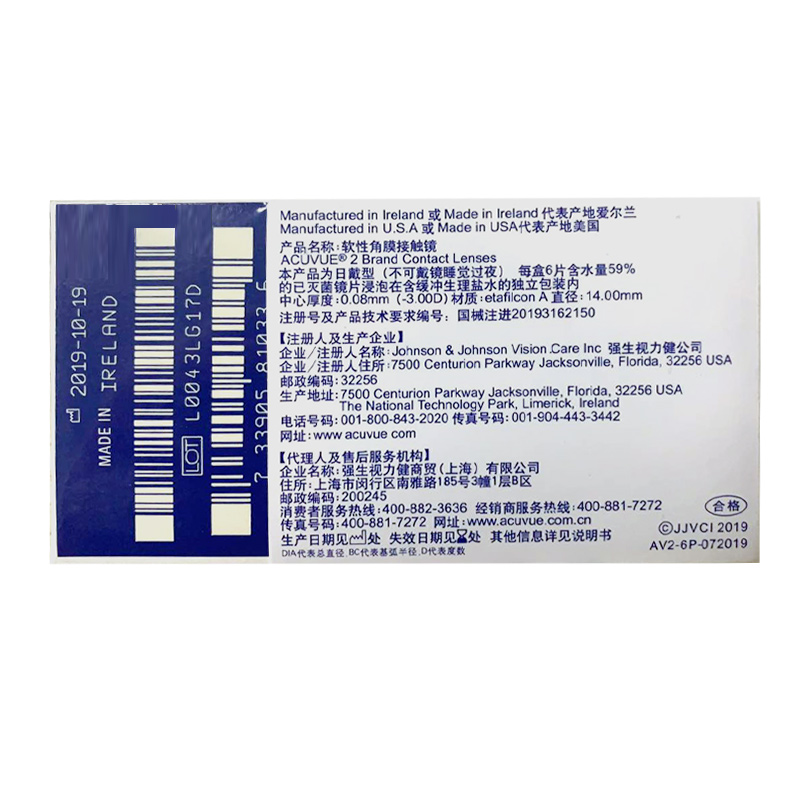 强生润眸双周抛近视隐形眼镜6片*2安视优旗舰店半月抛两周抛新客