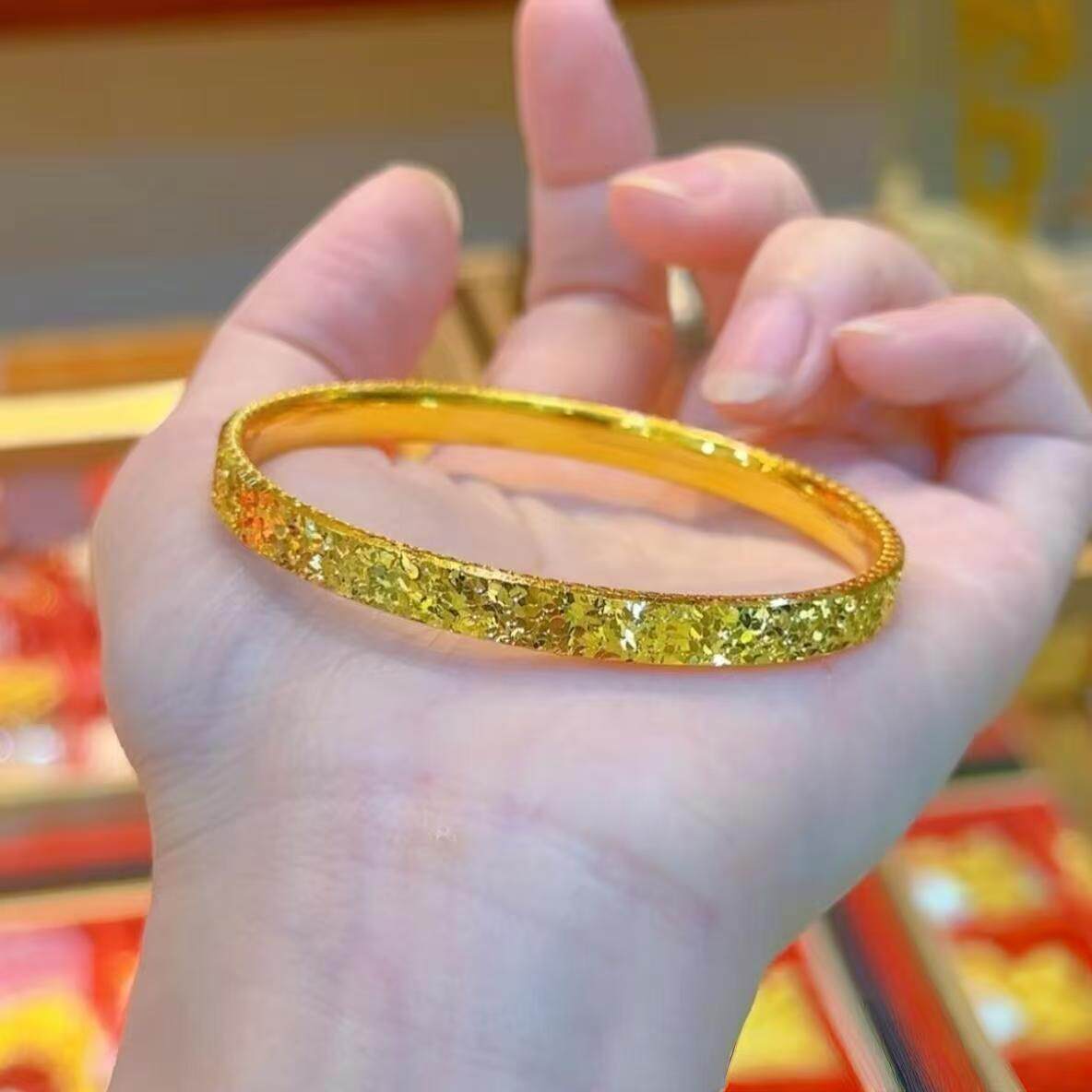 水贝黄金金店同款金包银手镯古法爆闪碎碎冰手链亮面实心镯子女