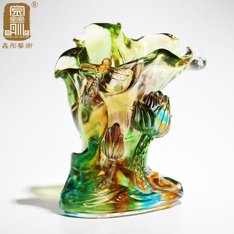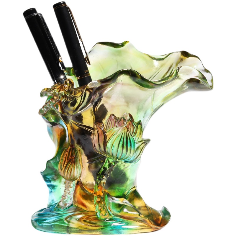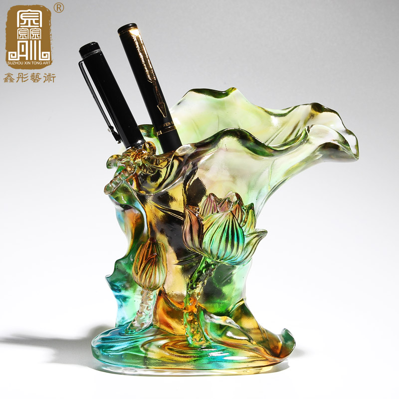 琉璃笔筒摆件清新办公室高档水晶工艺品送女老师朋友领导实用礼物