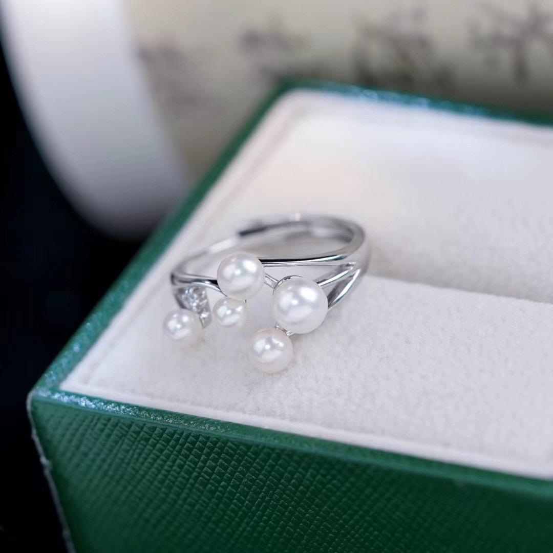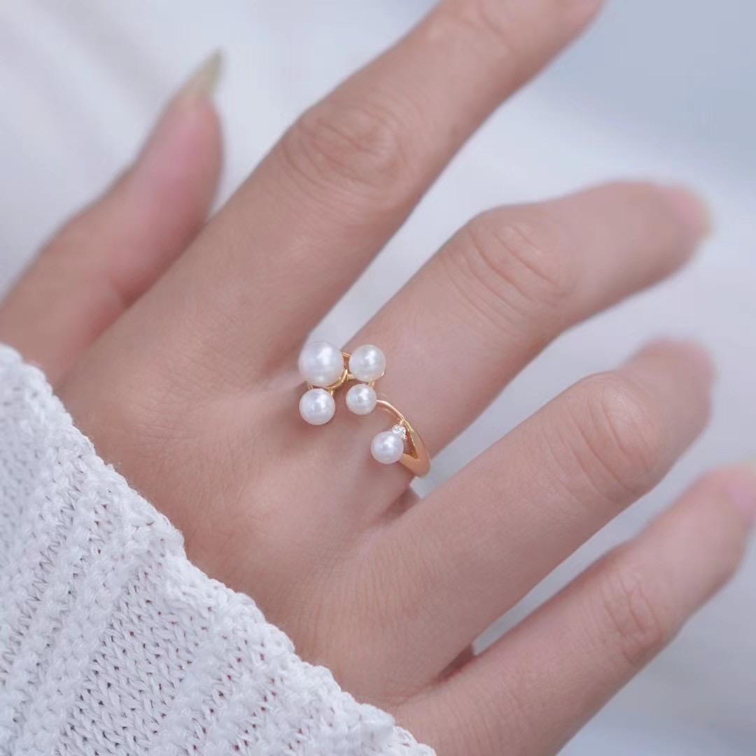 s925纯银戒指环 银饰多珠可调节珍珠戒指托DIY手工制作银配件空托