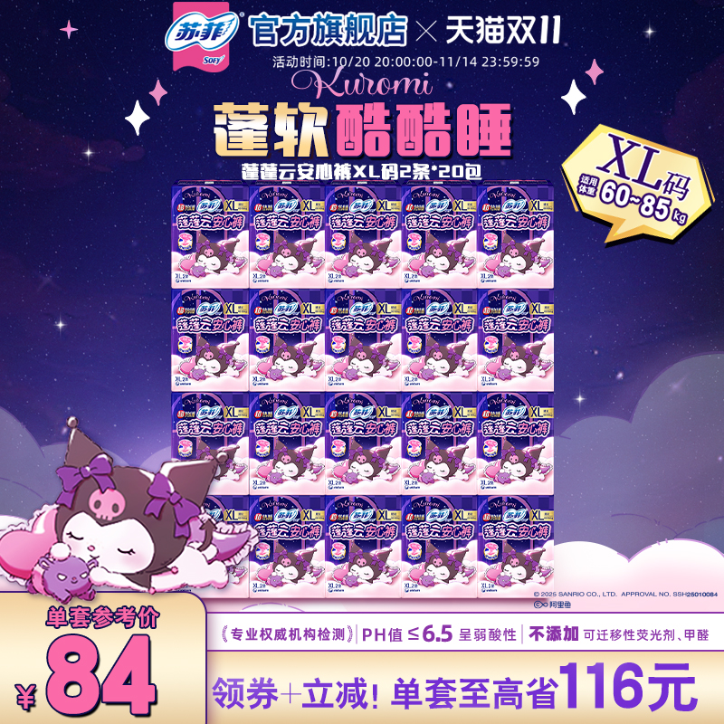 【囤货装】sofy/苏菲裤型卫生巾超熟睡夜用兔子安心裤组合40条