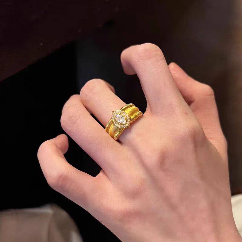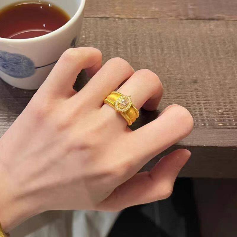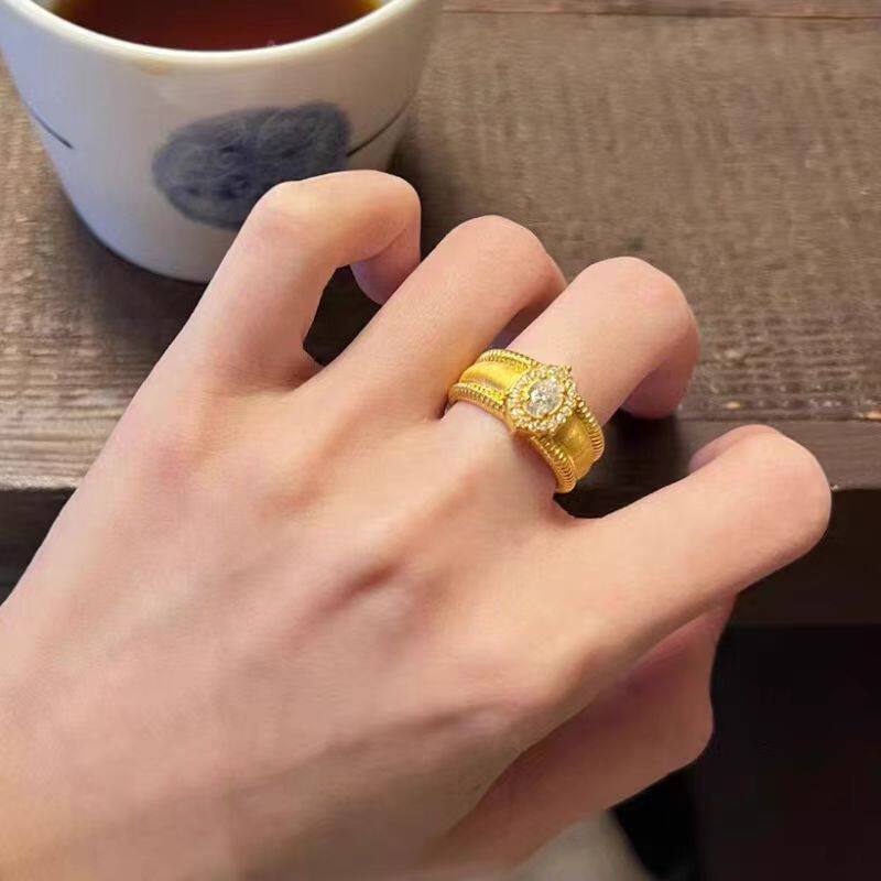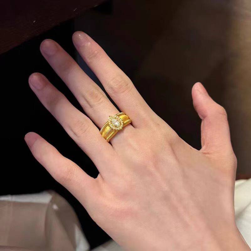 黄金镶嵌莫桑钻戒指999足金点钻鸽子蛋大气指环新款宫廷风送女友