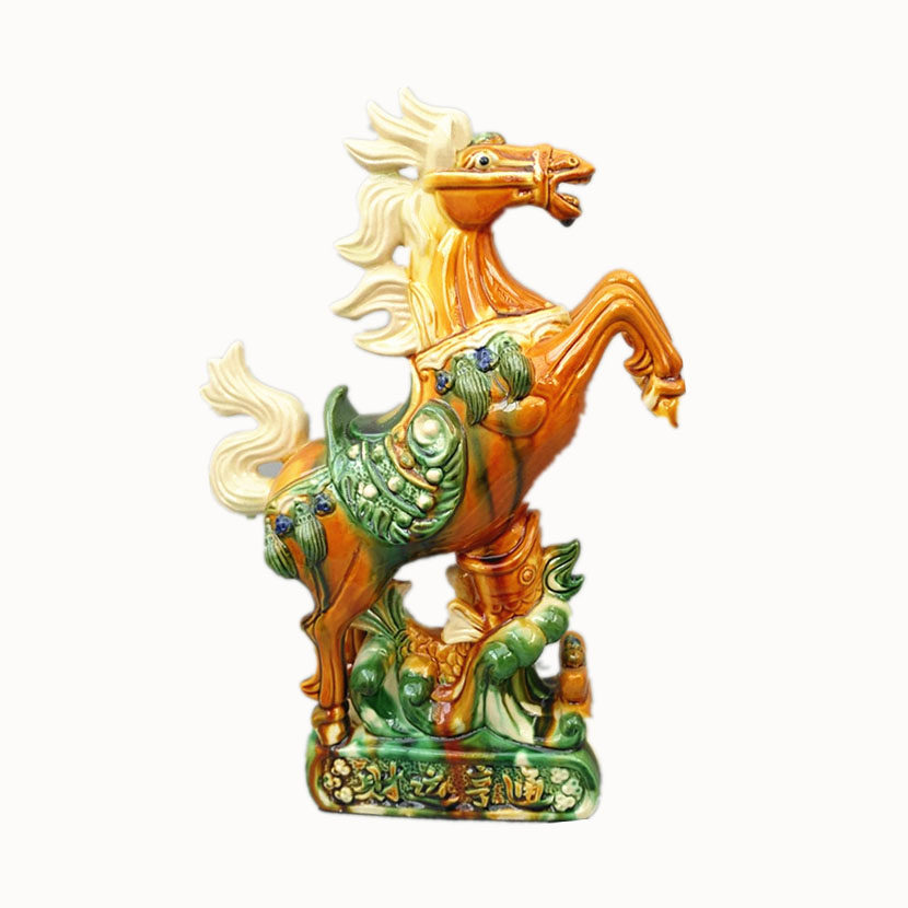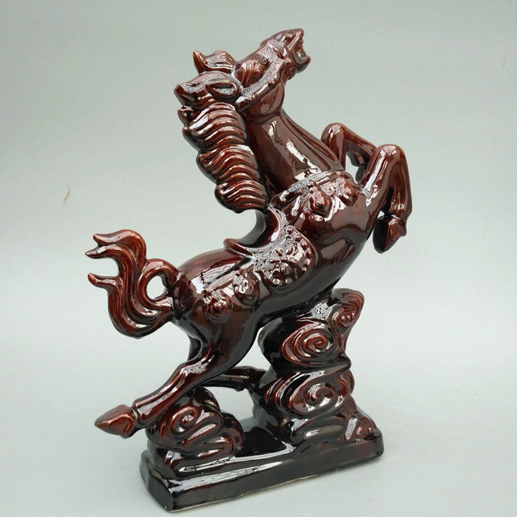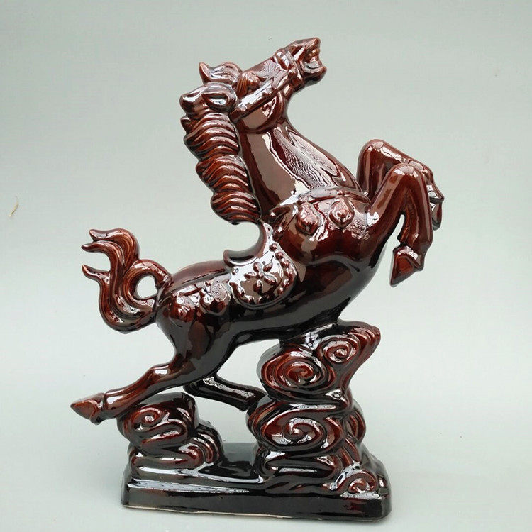 唐三彩陶瓷马摆件 飞马 棕色 家居软装客厅饰品 瓷器工艺品 包邮