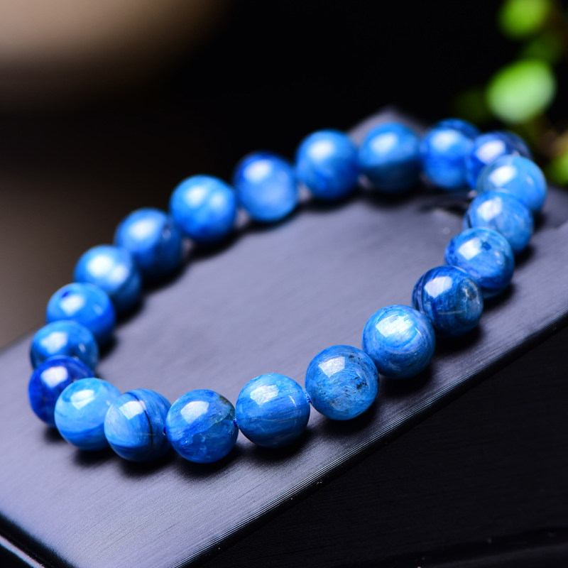 天然蓝晶石水晶手链蓝绒晶手链猫眼手串男女款情侣饰品