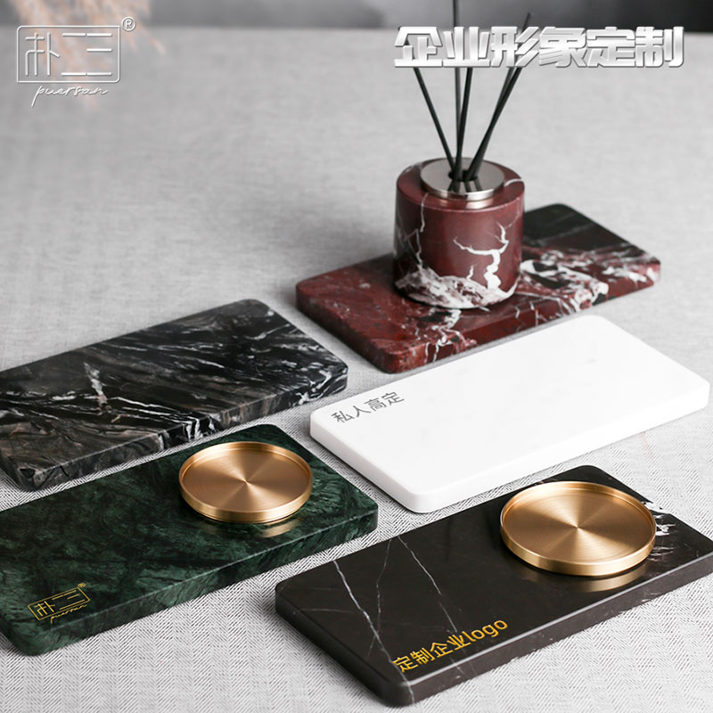 大理石香薰摆件托盘轻奢卫生间洗漱台放精致高端小首饰天然黄洞石