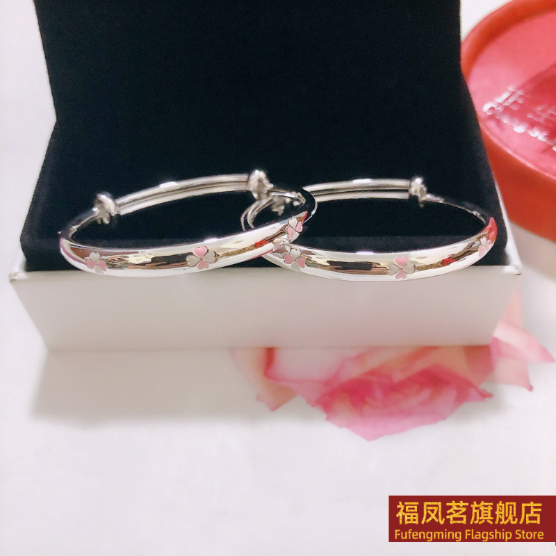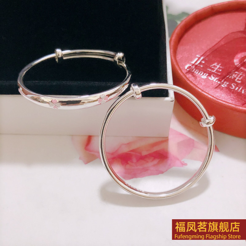 正生新款纯银幸运草宝宝手镯万足9999女可爱礼物周岁满月生日礼物