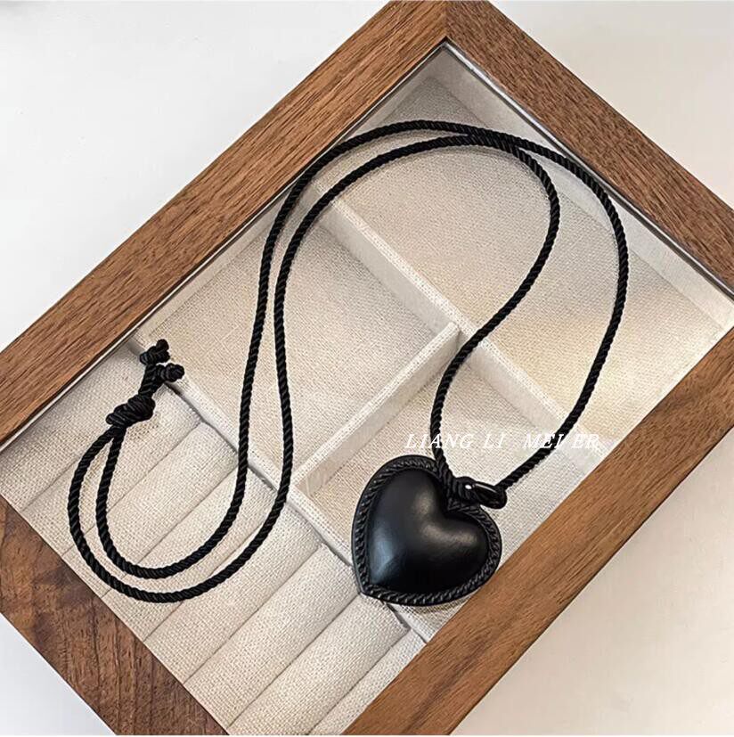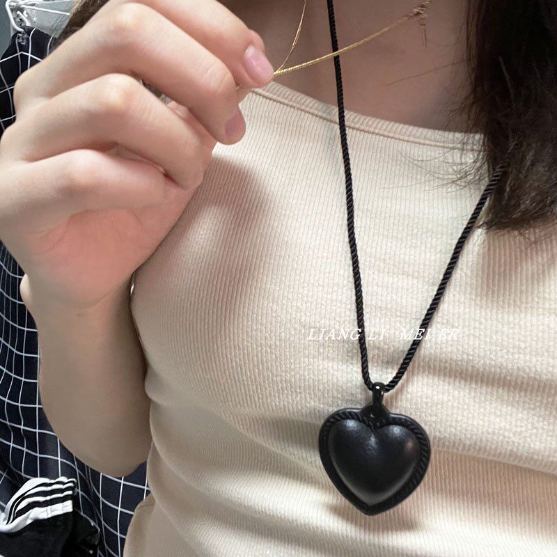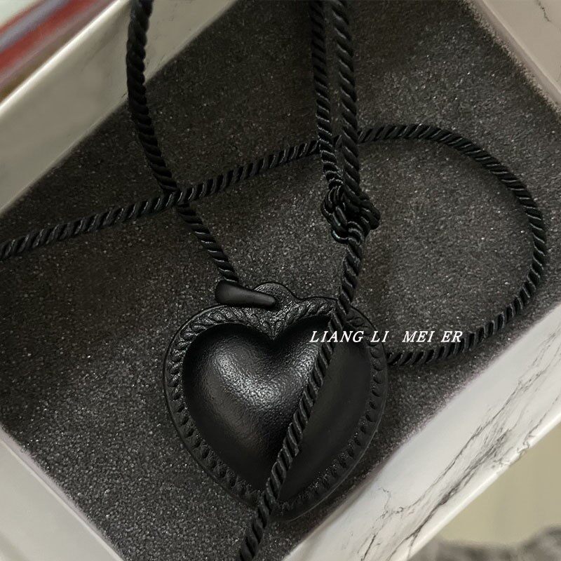 fever同款vintage黑色爱心项链女小众时尚复古吊坠毛衣链颈链配饰