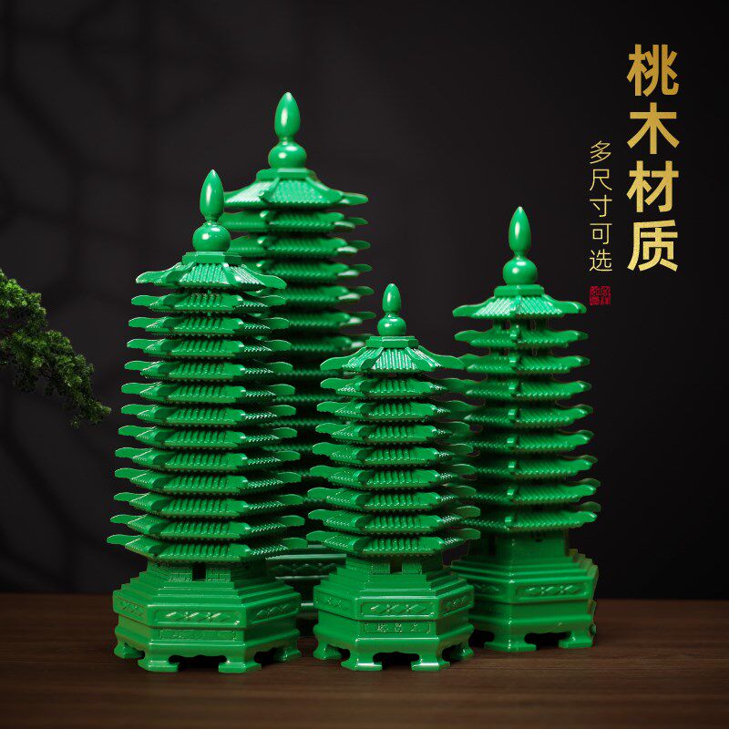 桃木文昌塔13层的木质绿色9层九层十三层办公室书房书桌上摆件