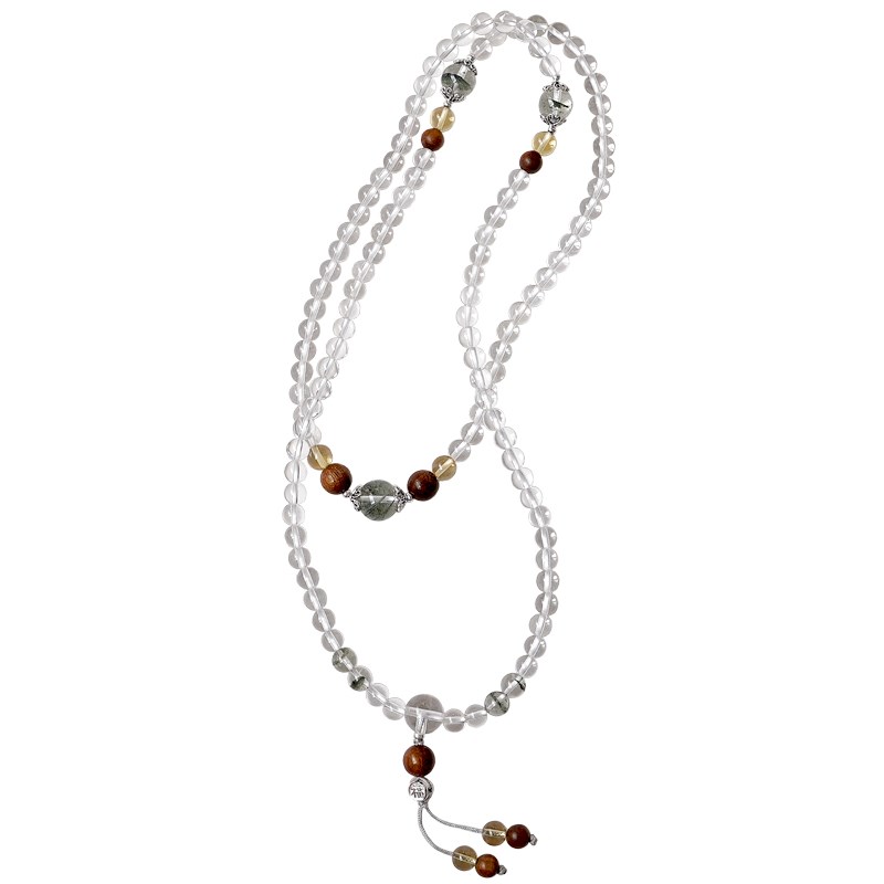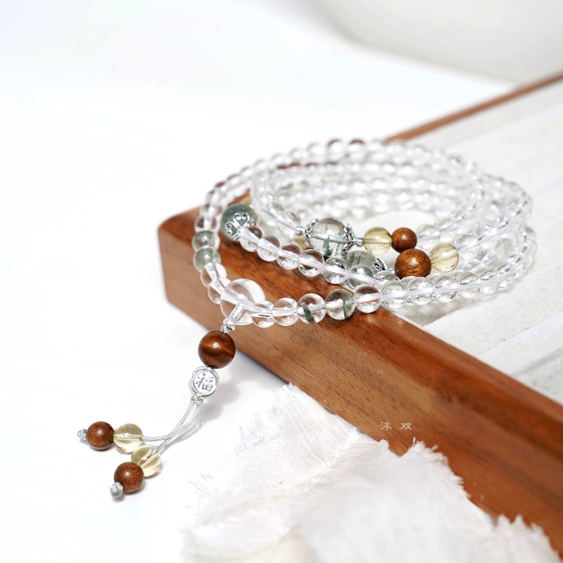 白水晶手链 108颗念珠高透天然手串多圈佛珠女项链新X中式国风手