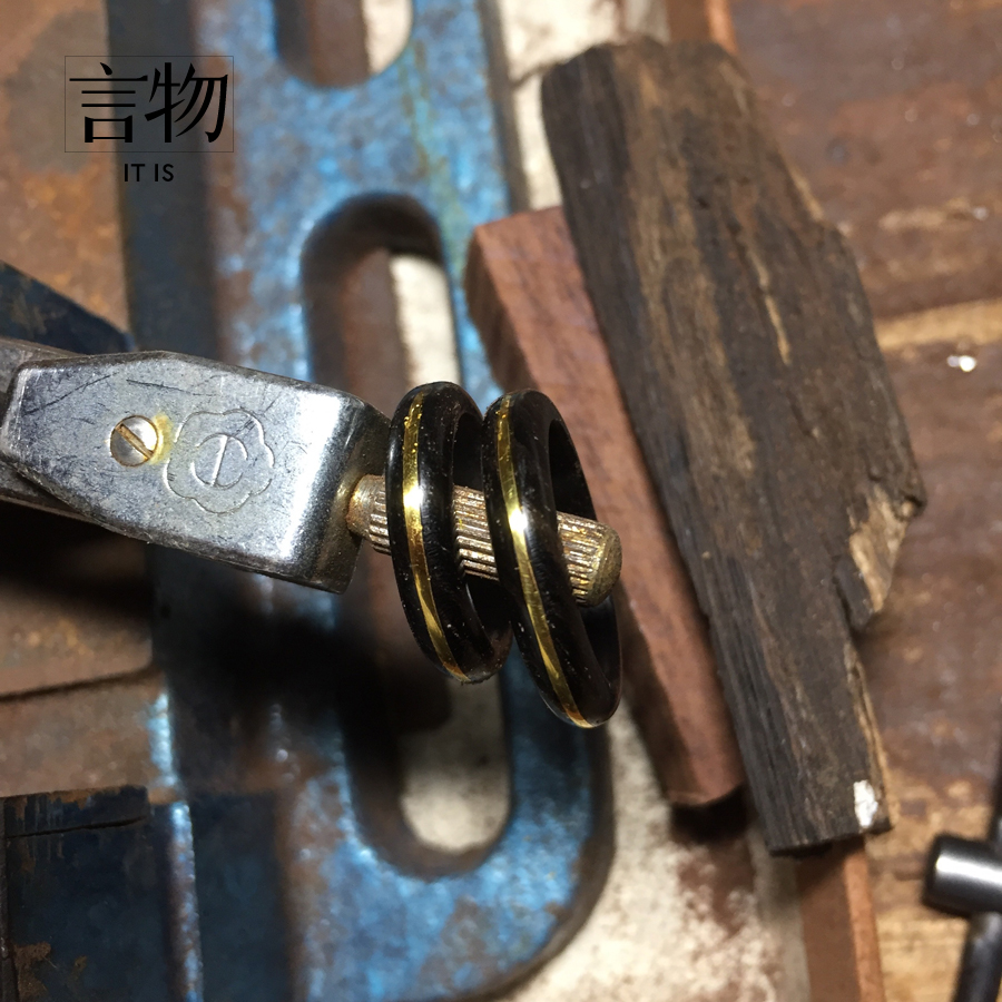 言物【流金岁月】原创设计手工铜金小叶紫檀黑木定制情侣礼物戒指