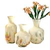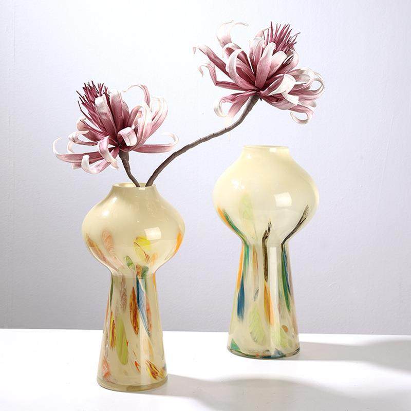 高级彩色琉璃中古芬顿奶黄色创意玻璃花瓶客厅茶几家居插花装饰