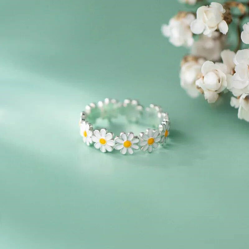 Vintage Daisy Flower Rings For Women Korean Style Adjustable