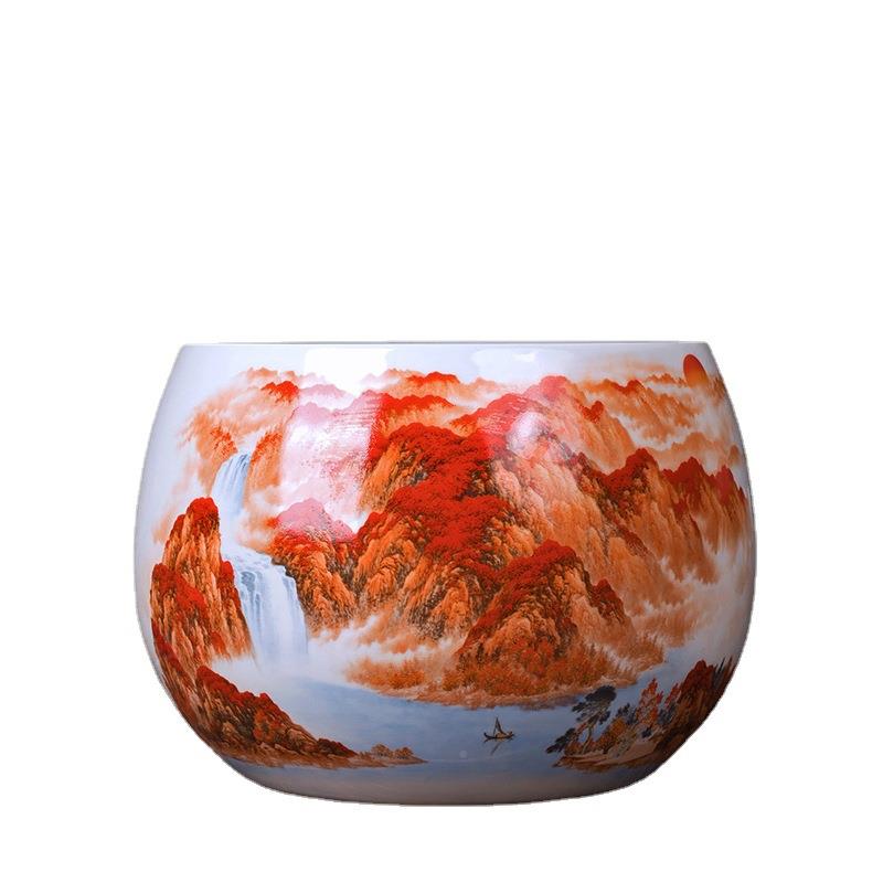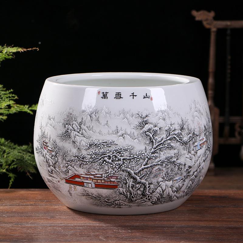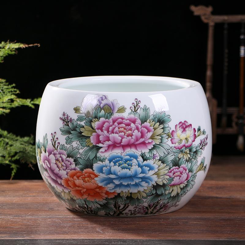 Atpeun景德镇陶瓷器粉彩聚宝盆缸家居创意装饰品摆件客厅电视柜玄