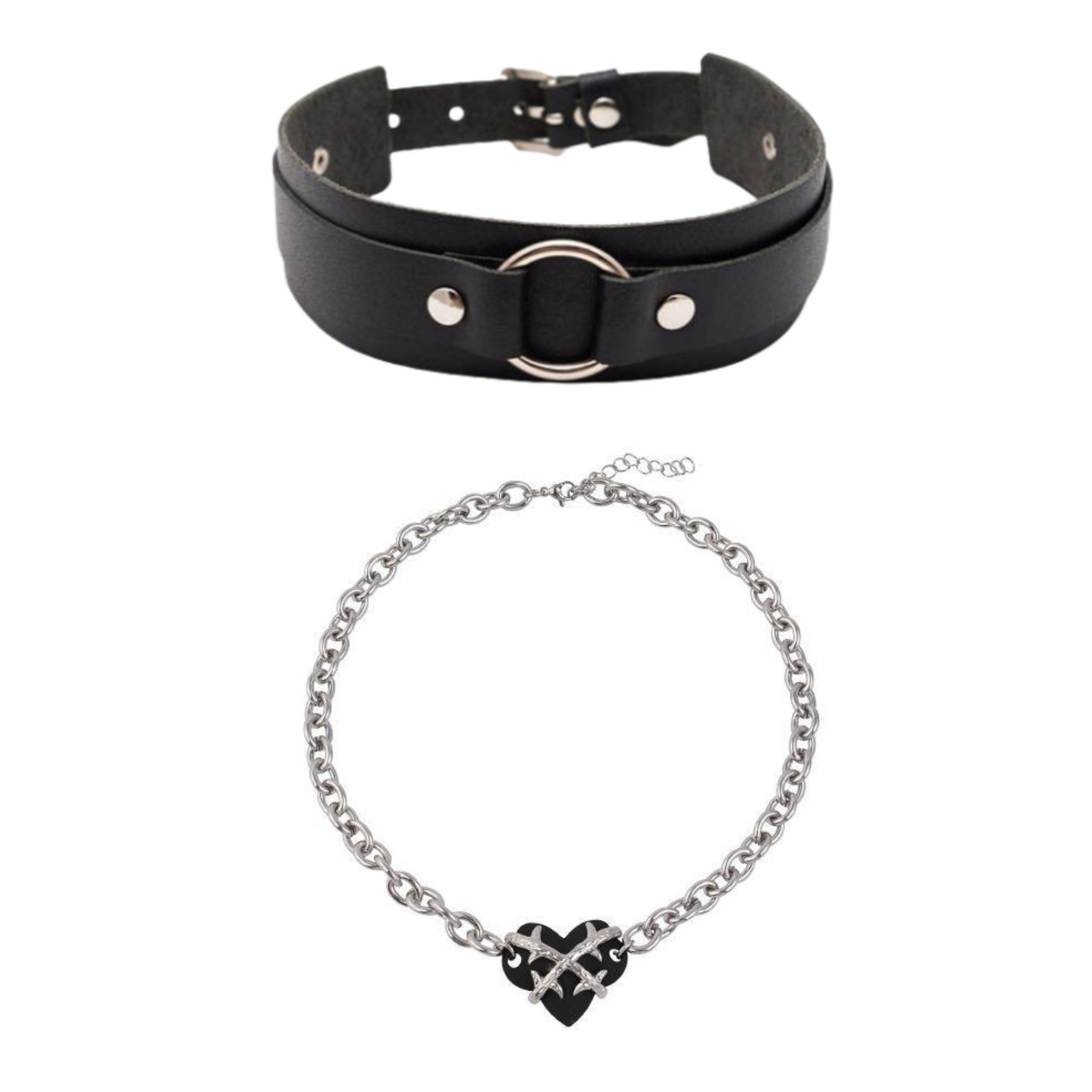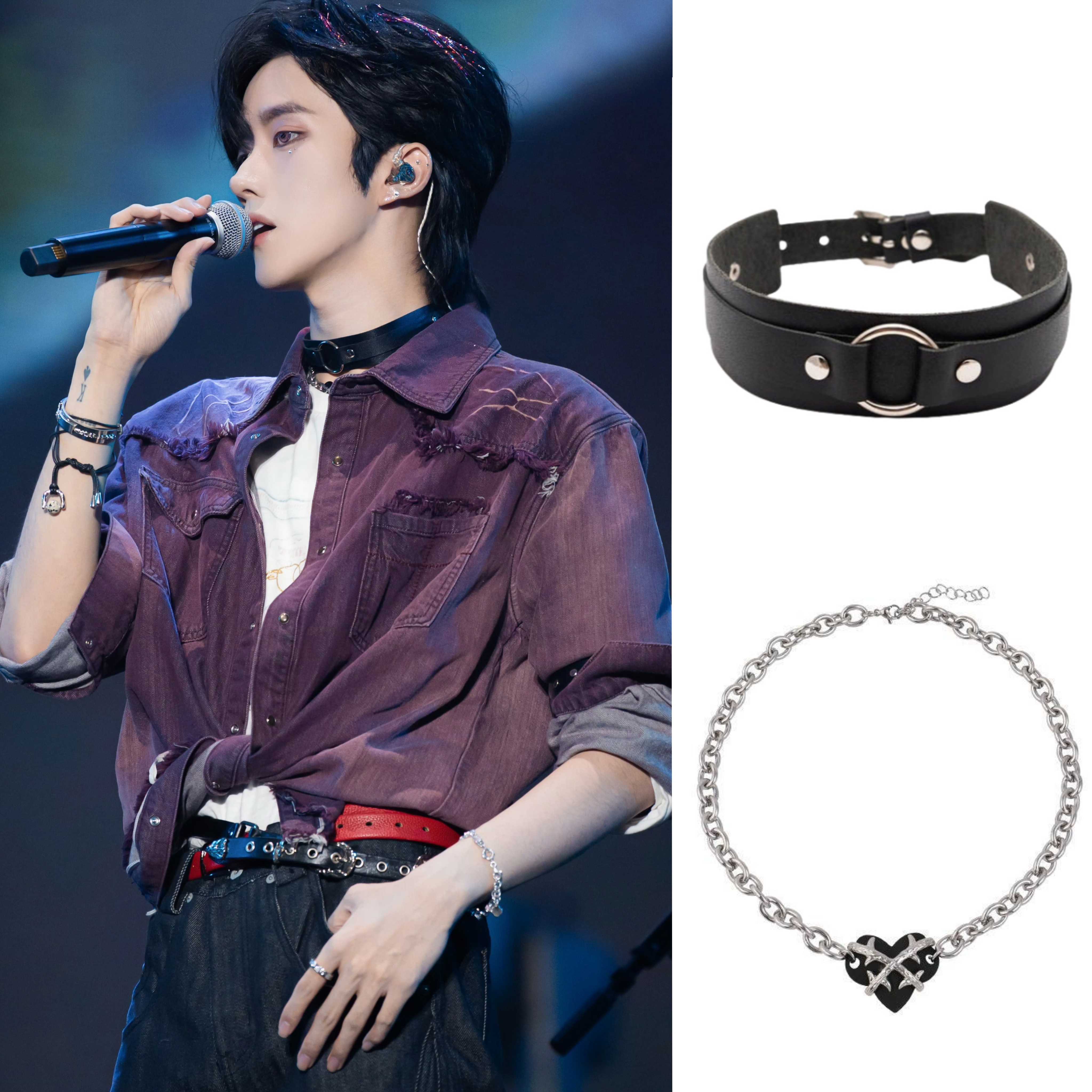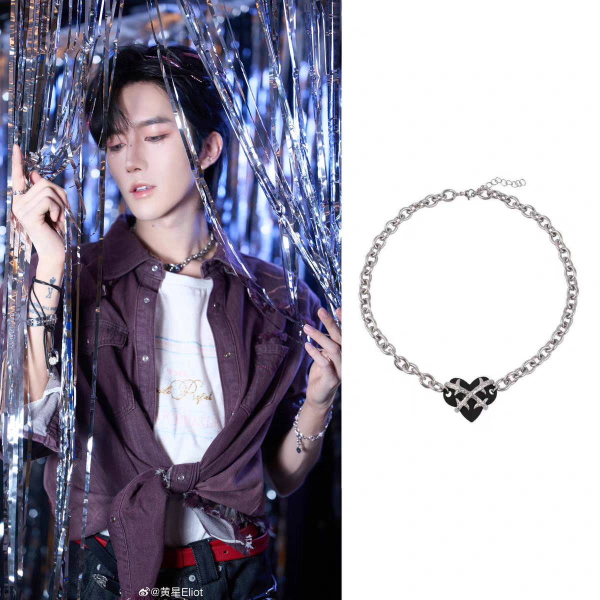 黄星Eliot花咏同款黑色皮革爱心项链套装Desire4 星有千千邱鼎杰