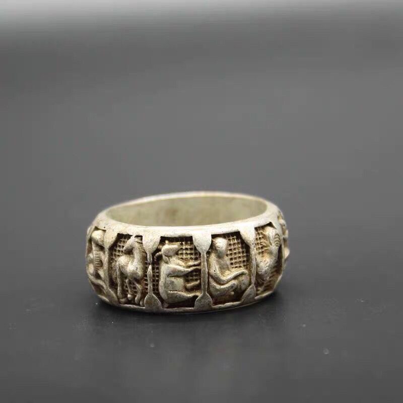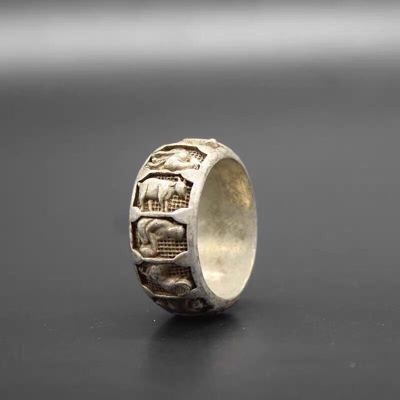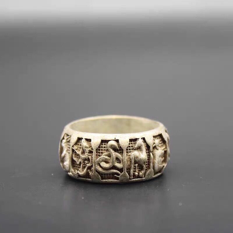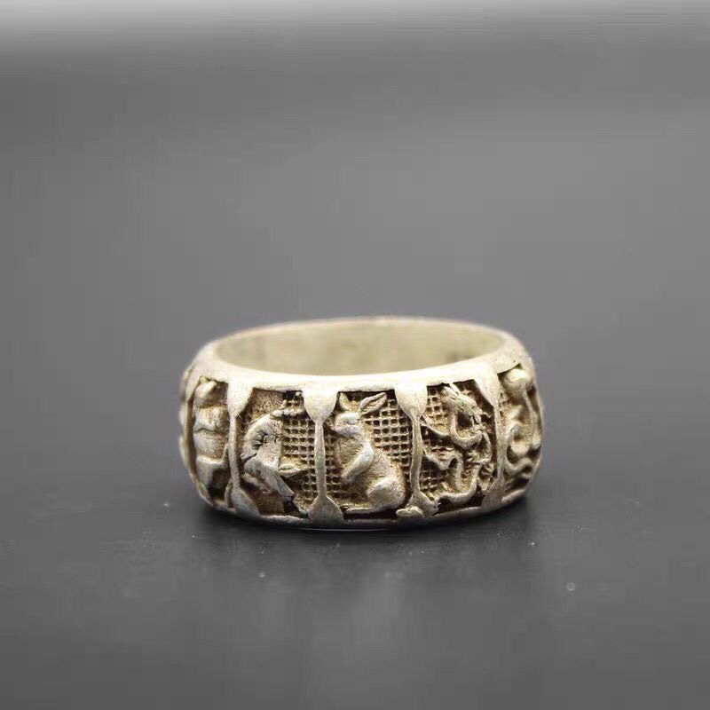 藏银戒指十二生肖戒指指环古玩杂项男女款戒指