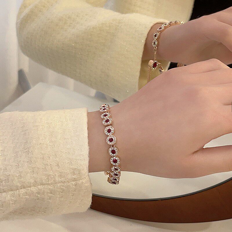 红色锆石可调节抽拉小众设计手链女款2026新款轻奢高颜值闺蜜手饰