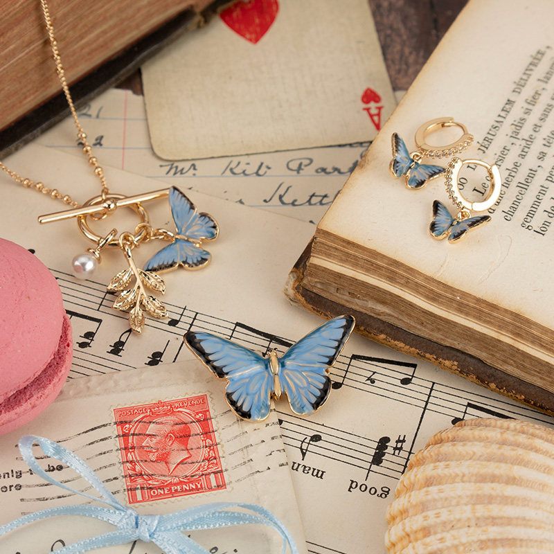 【李浩菲同款】Fable珐琅彩套扣蓝蝴蝶项链高级锁骨链送女友礼物