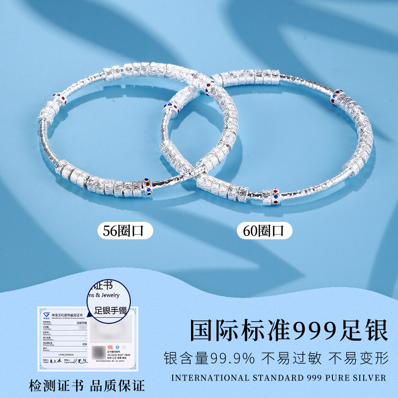 老银匠万贯盘缠实心s999足银手镯女款新中式国潮好运闭口纯银镯子