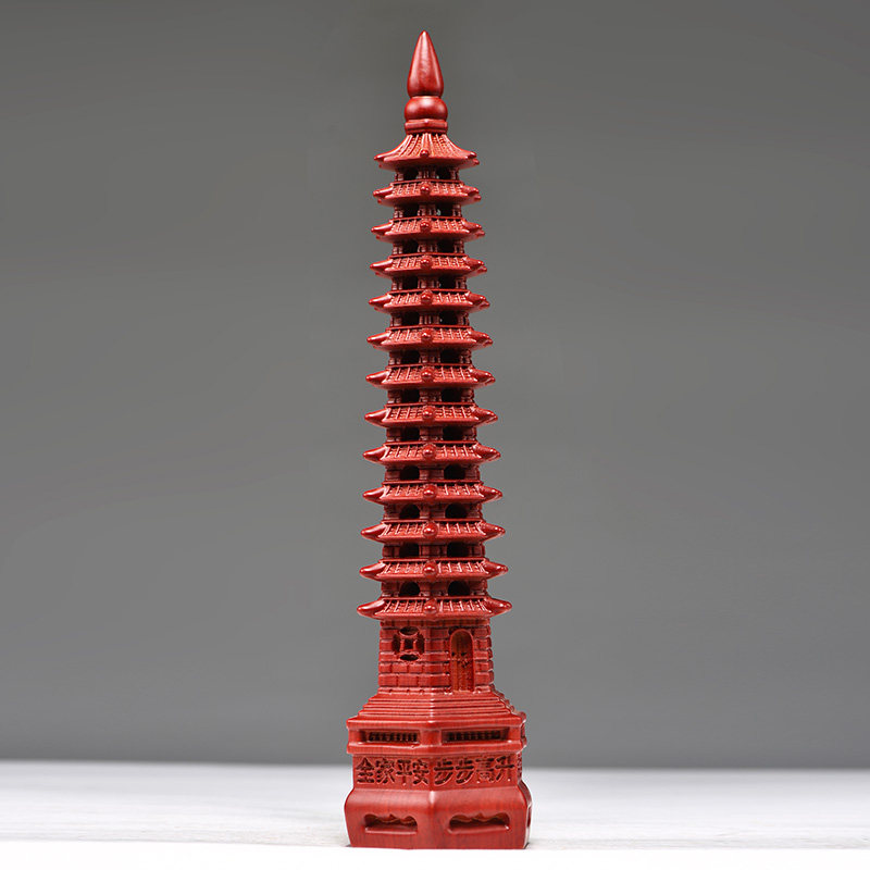 红色木质文昌塔十三层摆件实木雕刻9F层13层办公室装饰红木工艺品