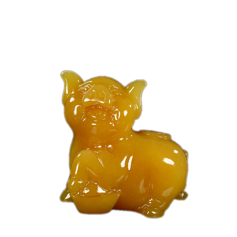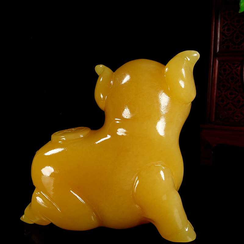 天然米黄玉富贵猪招財猪摆件玉石十二生肖猪客厅办公室发財猪摆件