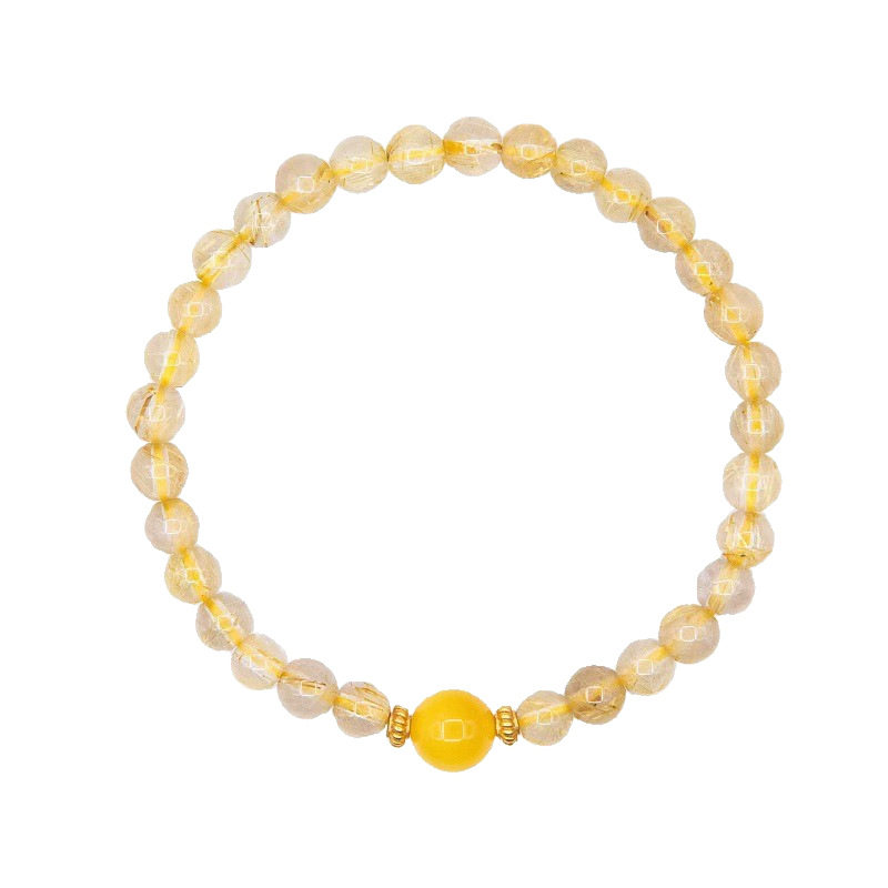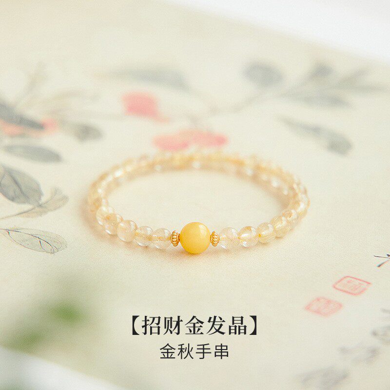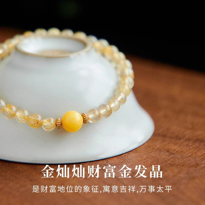 金发晶手串天然石黄色水晶招财求财手链女生款蜜蜡转运珠金秋