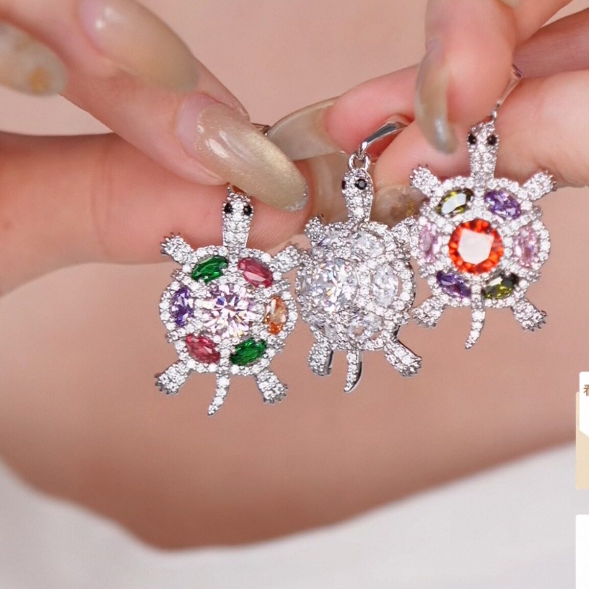 旭平时尚个性彩色微镶人造石设计感乌龟合金单吊坠无链条