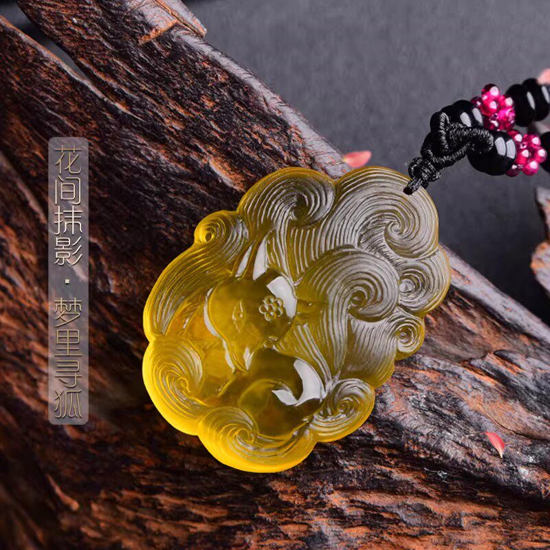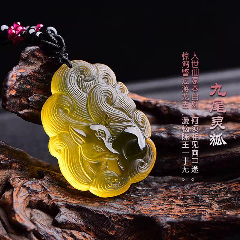 天然黄水晶九尾狐吊坠催黄色水晶缘桃花狐狸项链男女饰品礼物首饰