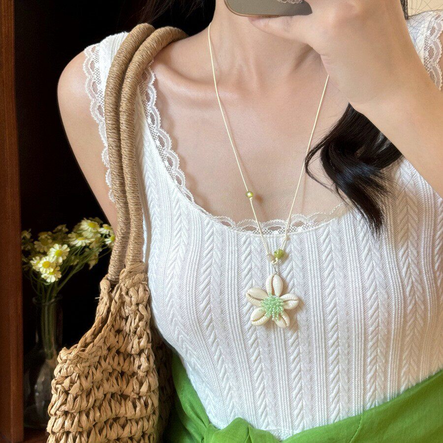 少夫人来自东北梁雯静钱小卉同款绿色贝壳项链女夏日甜美锁骨配饰