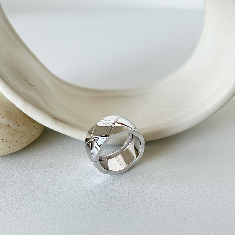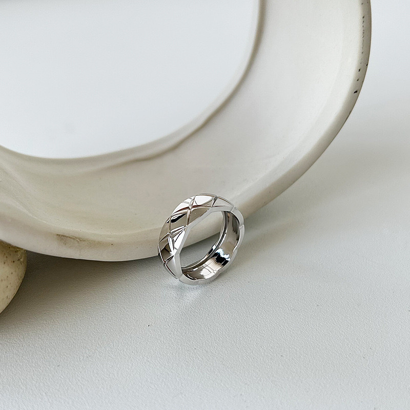 欧美网红通体925银菱格戒指女cnc工艺小香风高级感纯银指环