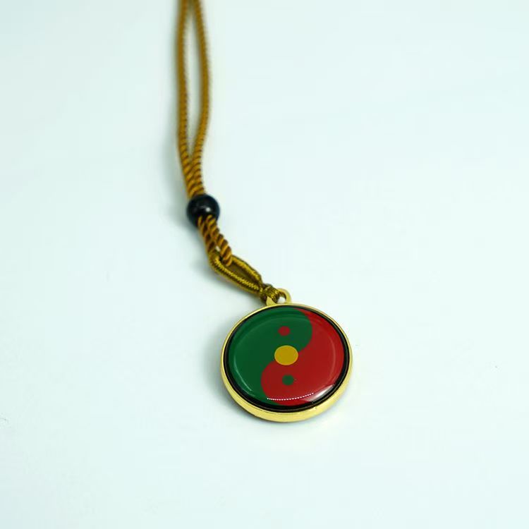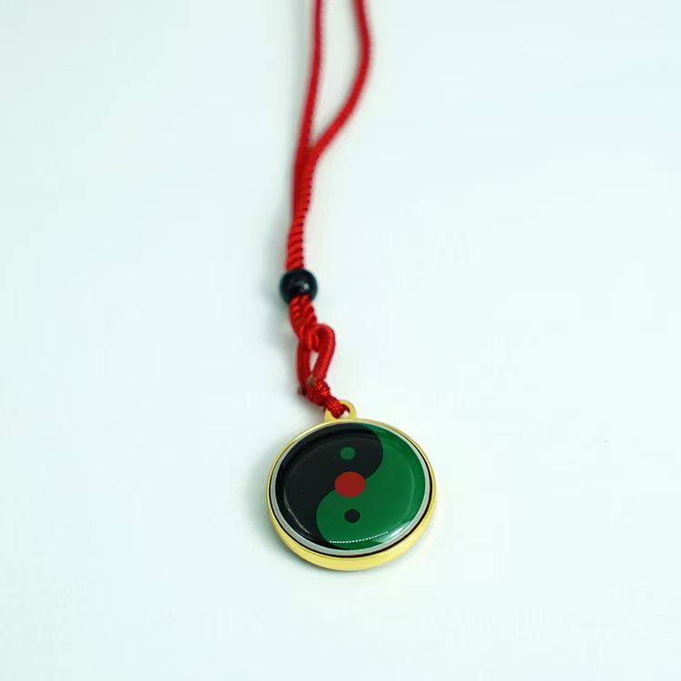 黑白红绿三色太极八卦图黑白纯铜吊坠项链男女阴阳红黄2.3cm双面