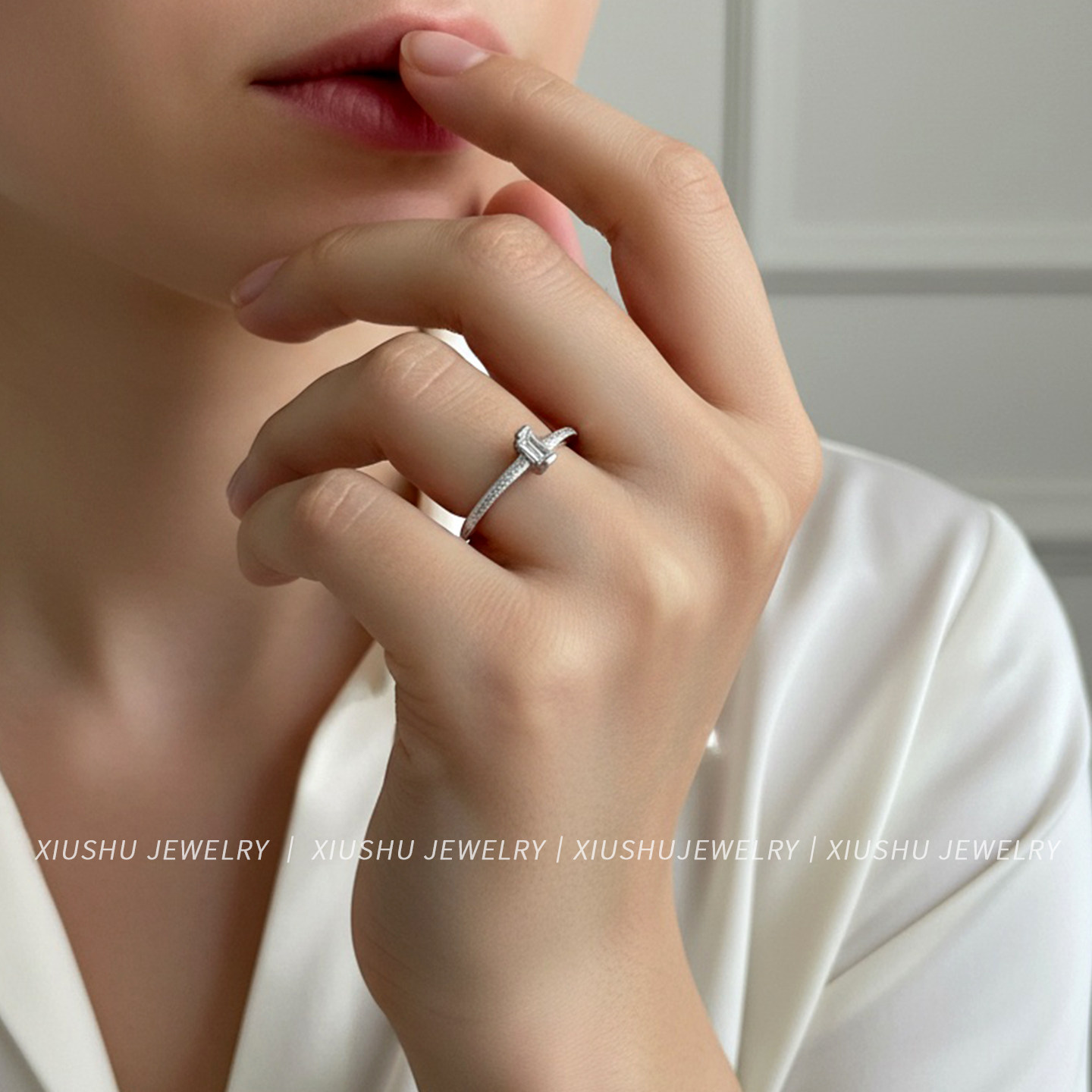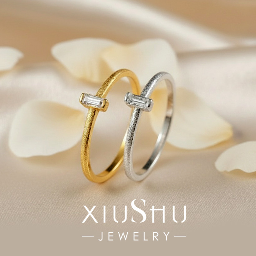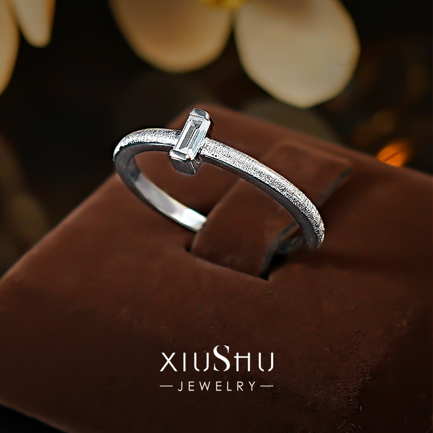 小冰糖拉丝祖母绿切割钻戒指925纯银迷你老钱风哑光质感指环叠