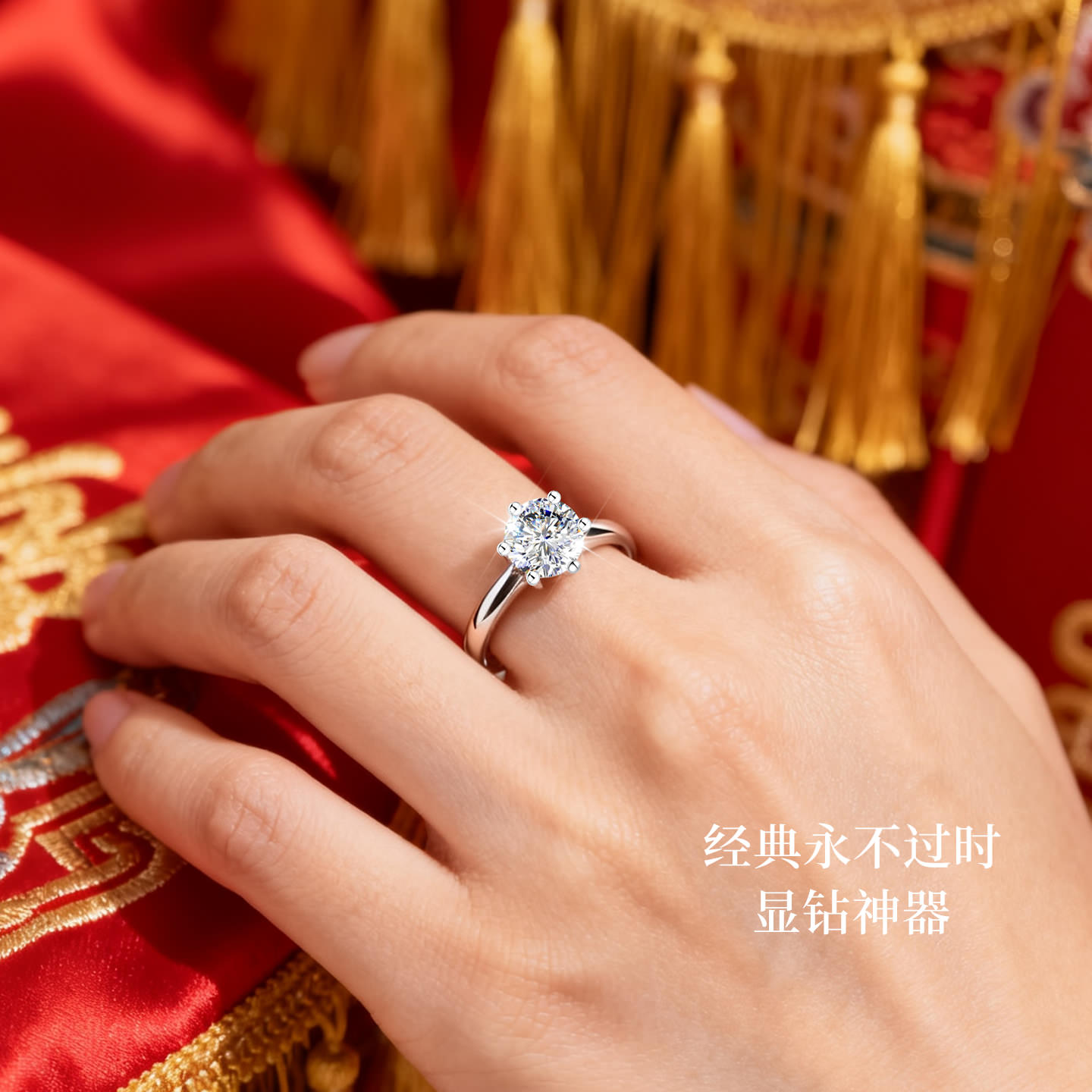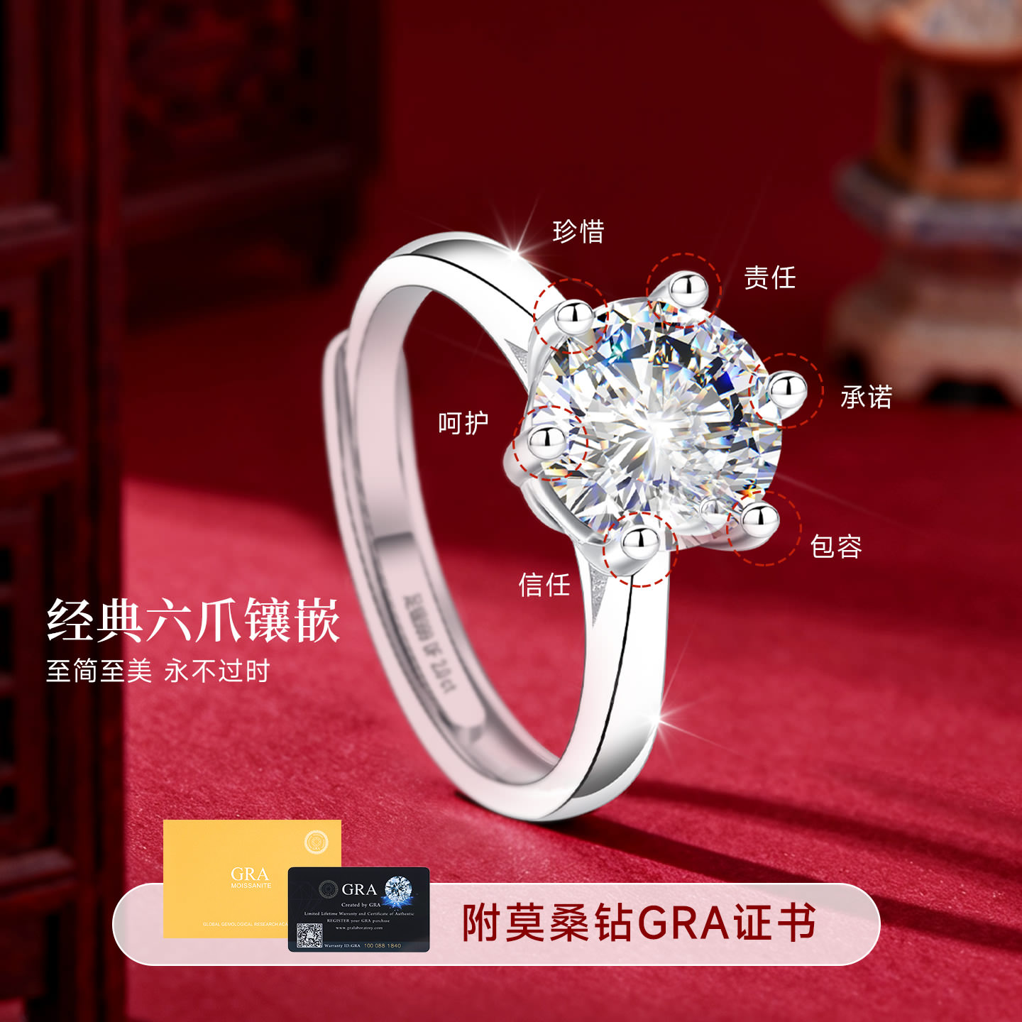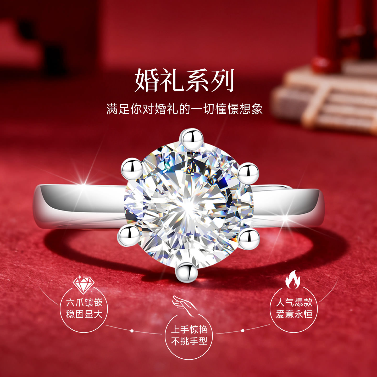 银戒指女999纯银2克拉莫桑石钻石莫桑钻钻戒求婚女款女士情侣对戒