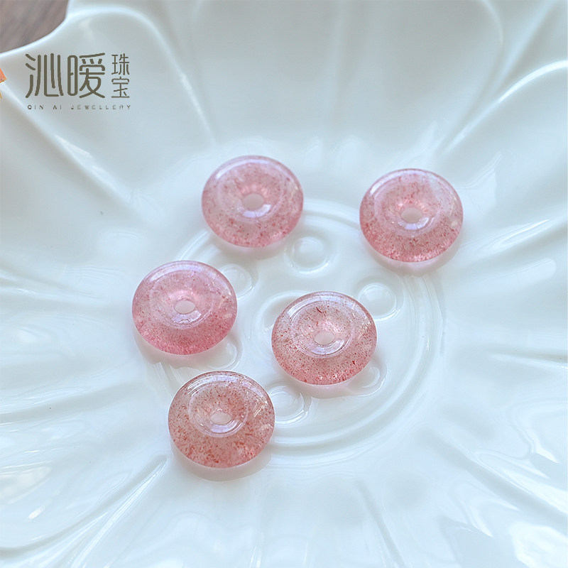 草莓晶平安扣原创设计白水体草莓晶吊坠粉水晶锁骨项链女挂件配饰