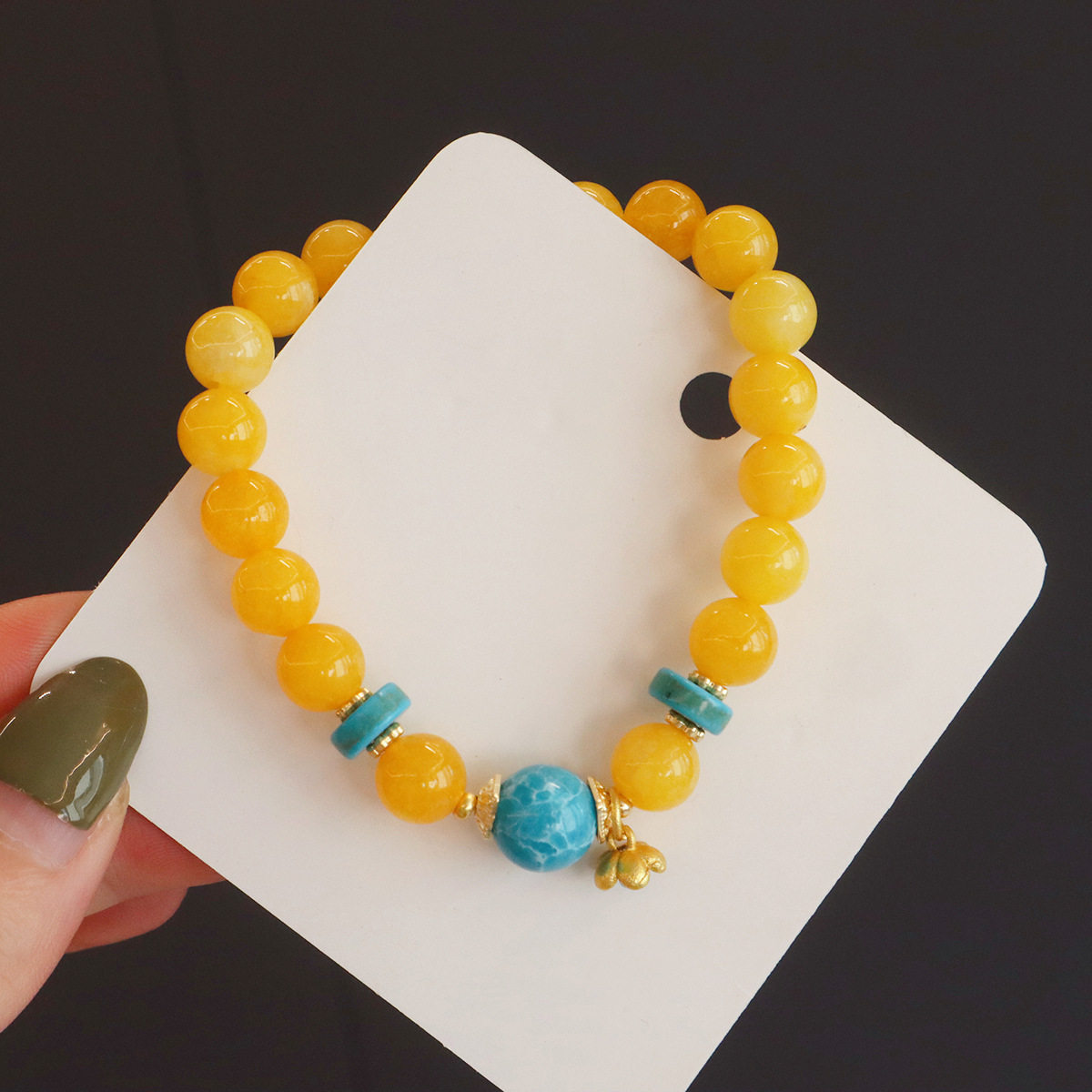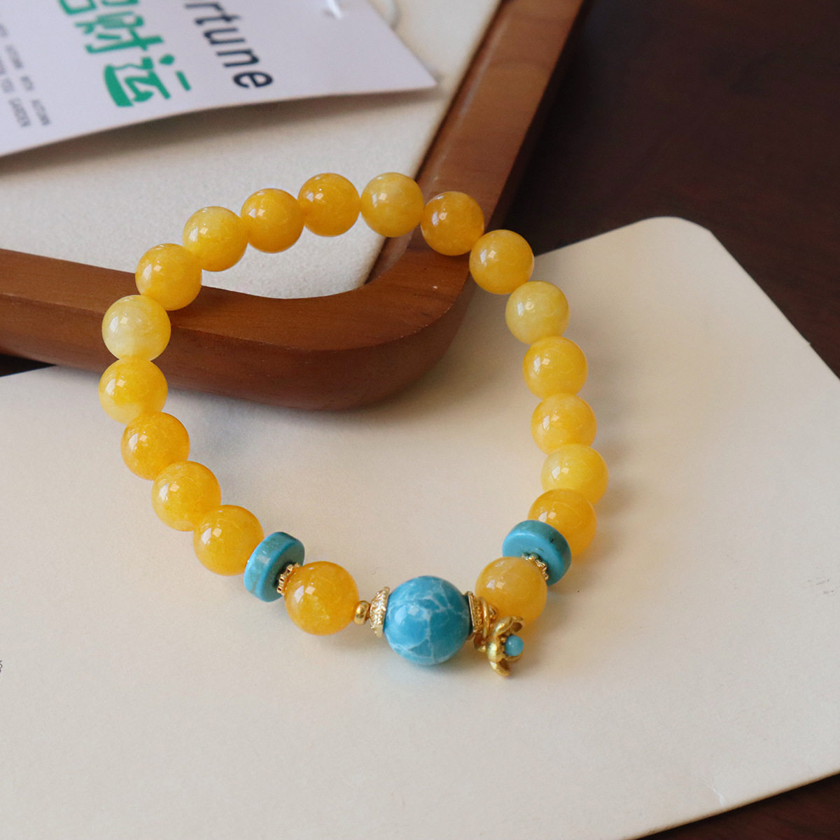 黄色金丝玉蓝石手链女红玛瑙手串简约新中式铃兰花复古中国风手饰