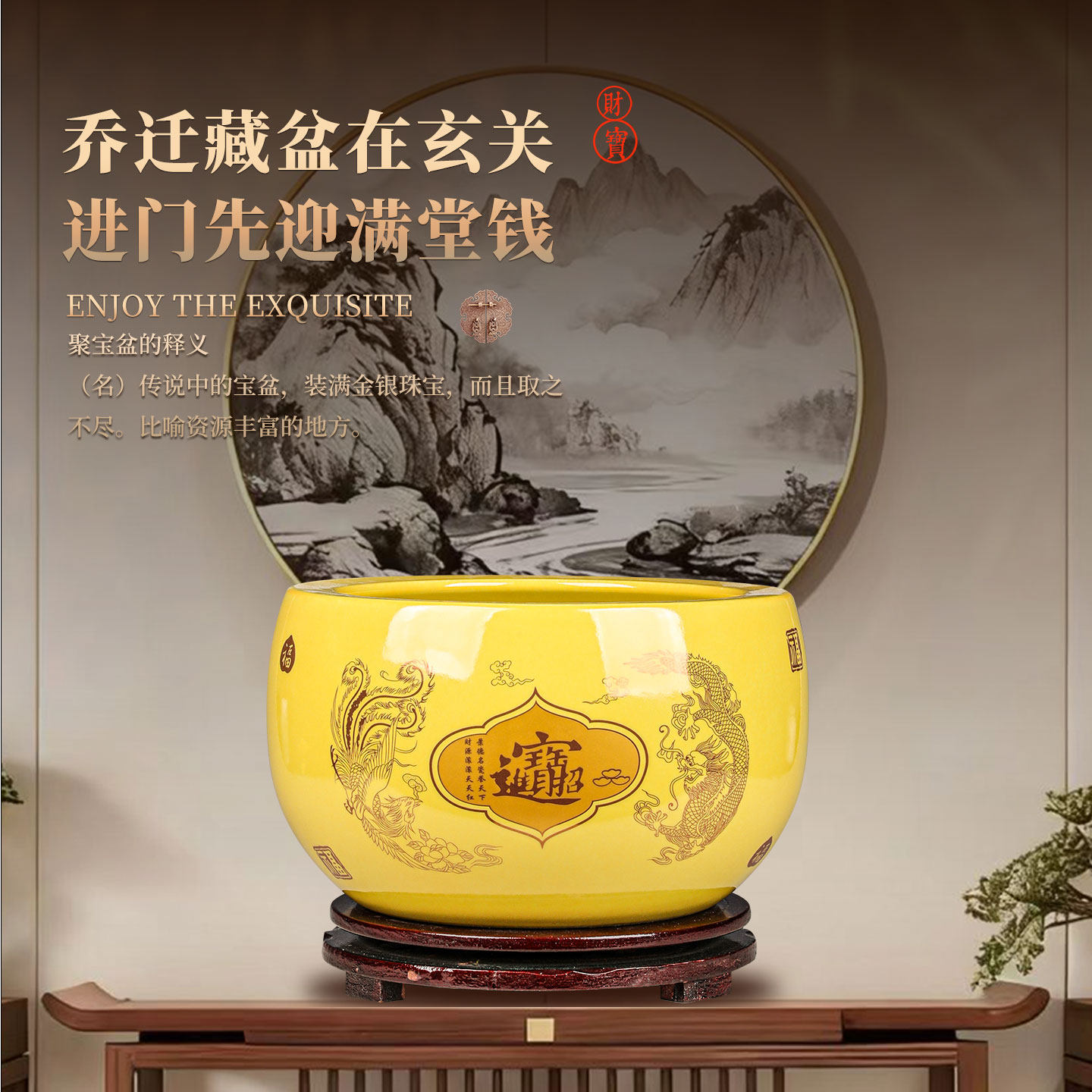聚宝盆摆件招财聚财陶瓷家用存钱罐陶瓷米缸八方来财店铺开业礼品
