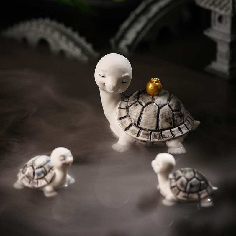 陶瓷可爱小乌龟摆件精品可养茶台卡通长寿龟茶玩鱼缸盆栽装饰造景